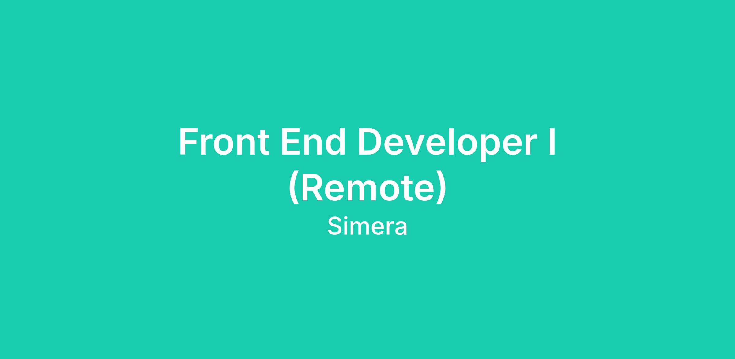Front End Developer I (Remote)