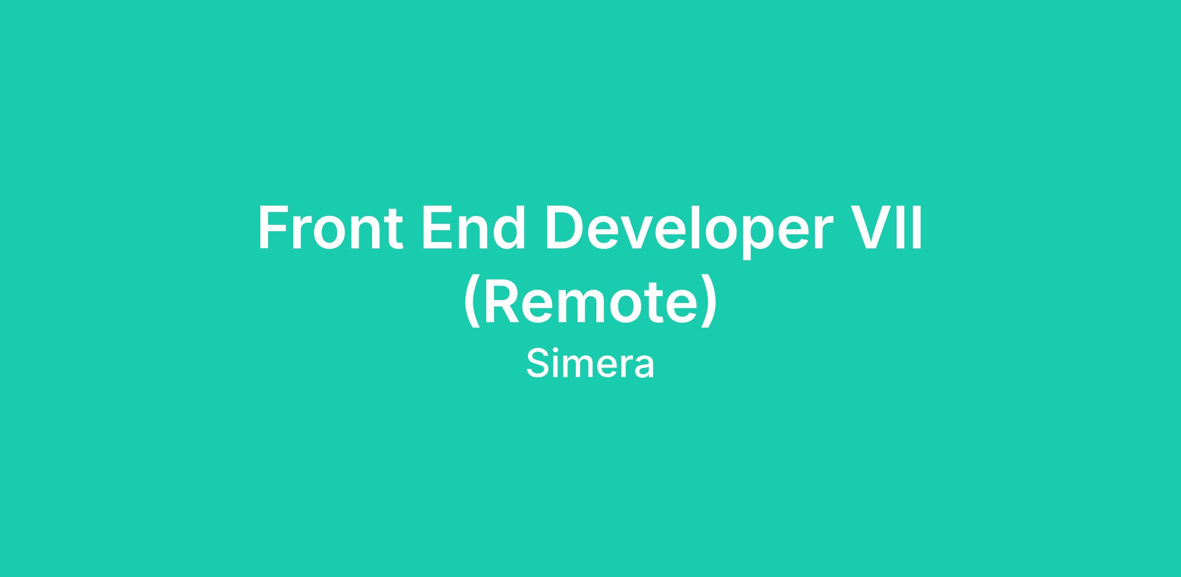 Front End Developer VII (Remote)