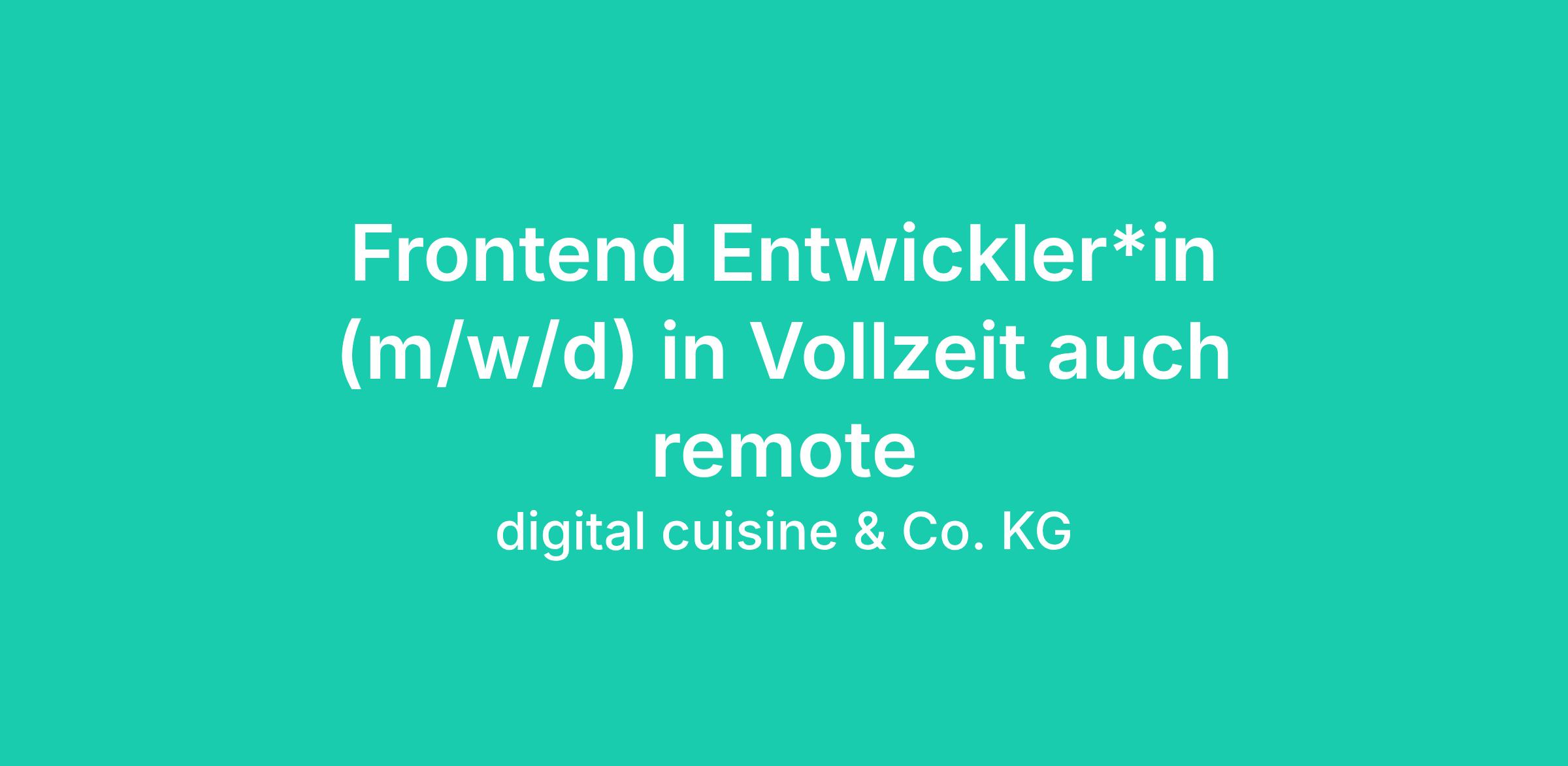 Frontend Entwickler*in (m/w/d) in Vollzeit auch remote