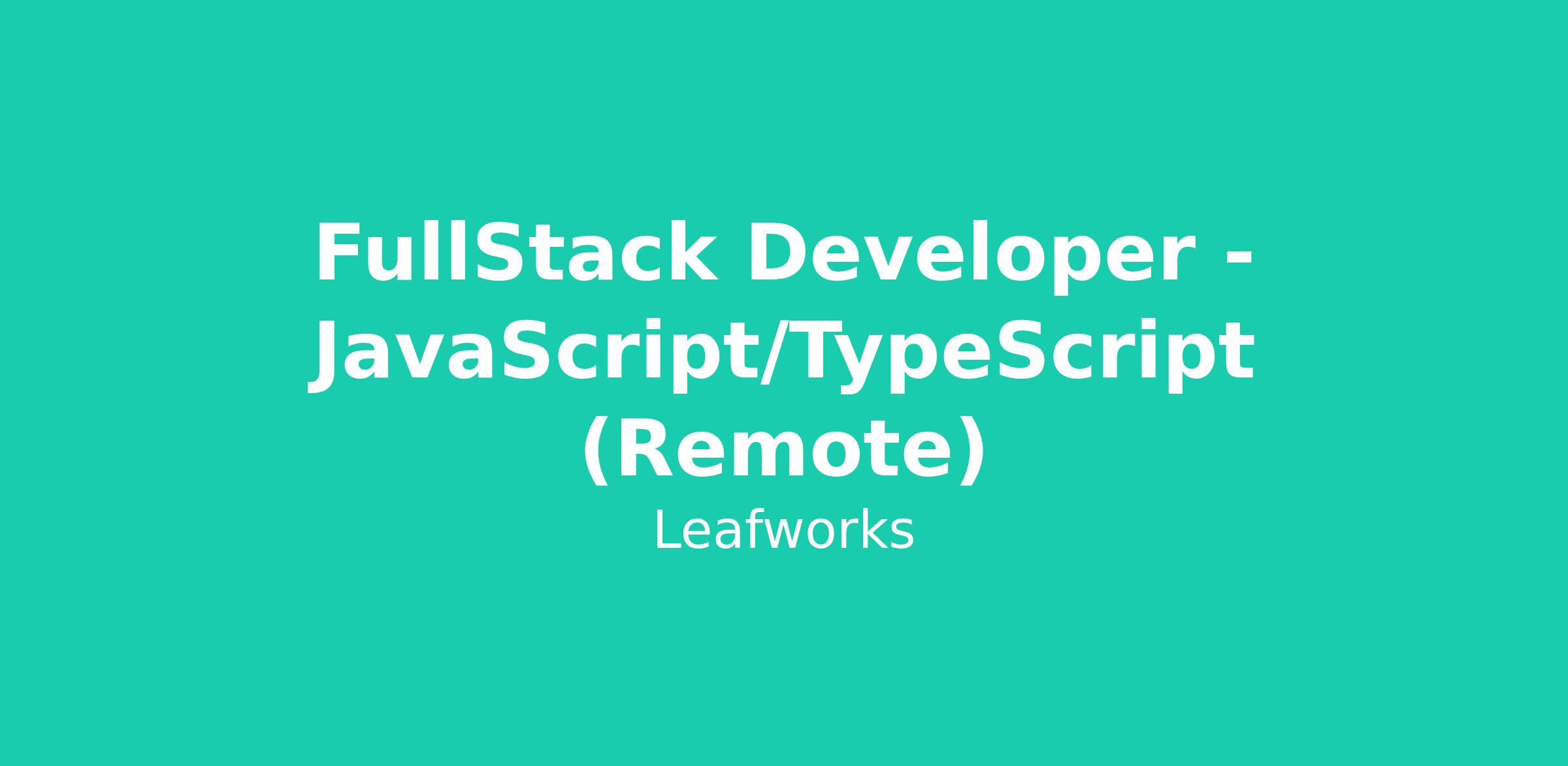 FullStack Developer - JavaScript/TypeScript (Remote)