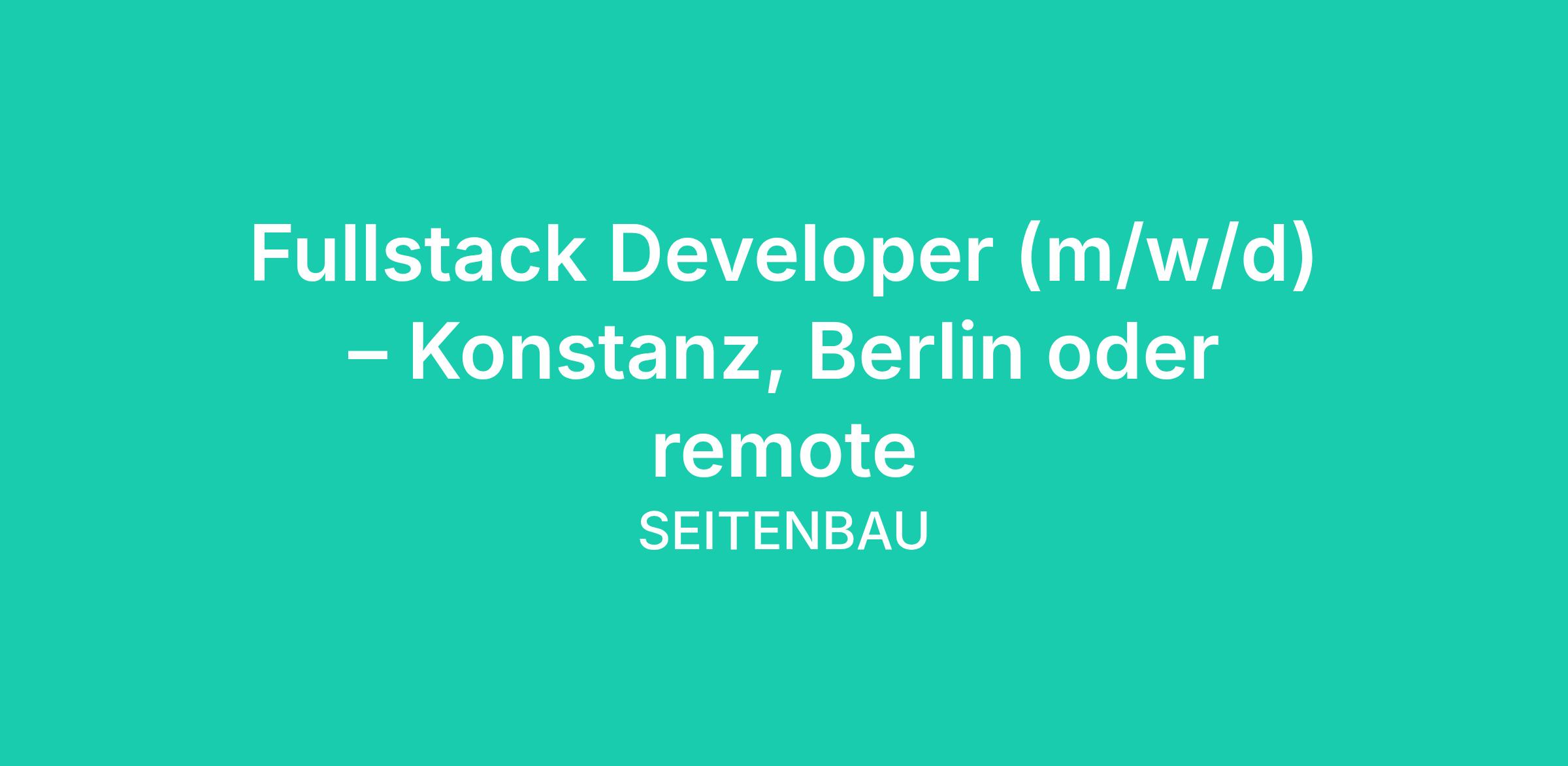 Fullstack Developer (m/w/d) – Konstanz, Berlin oder remote