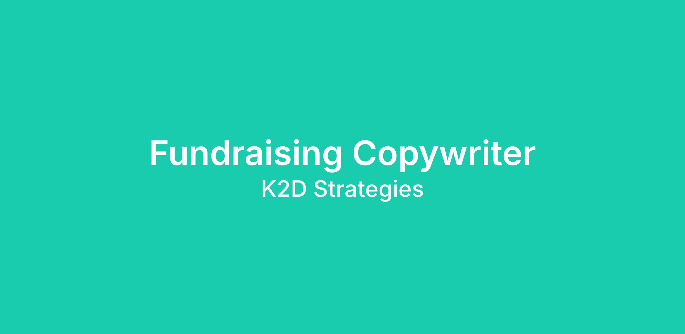 K2D Strategies is a growing fundraising agency that holistically approaches direct response through a channel-agnostic lens. As a copywriter at K2D, you play a vital role in our clients’ success by developing compelling copy for direct mail, email, and social media fundraising campaigns.