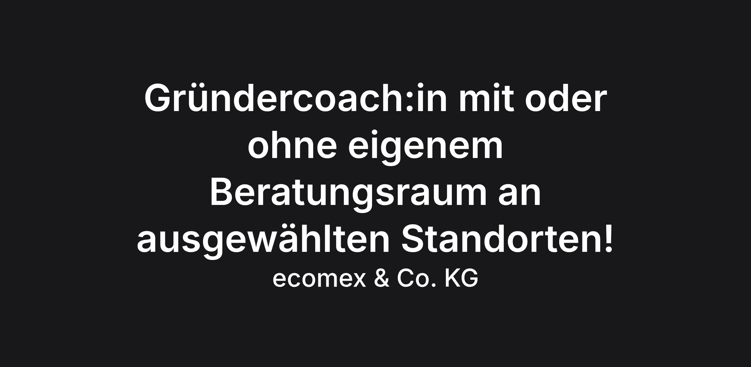 Gründercoach:in mit oder ohne eigenem Beratungsraum an ausgewählten Standorten!