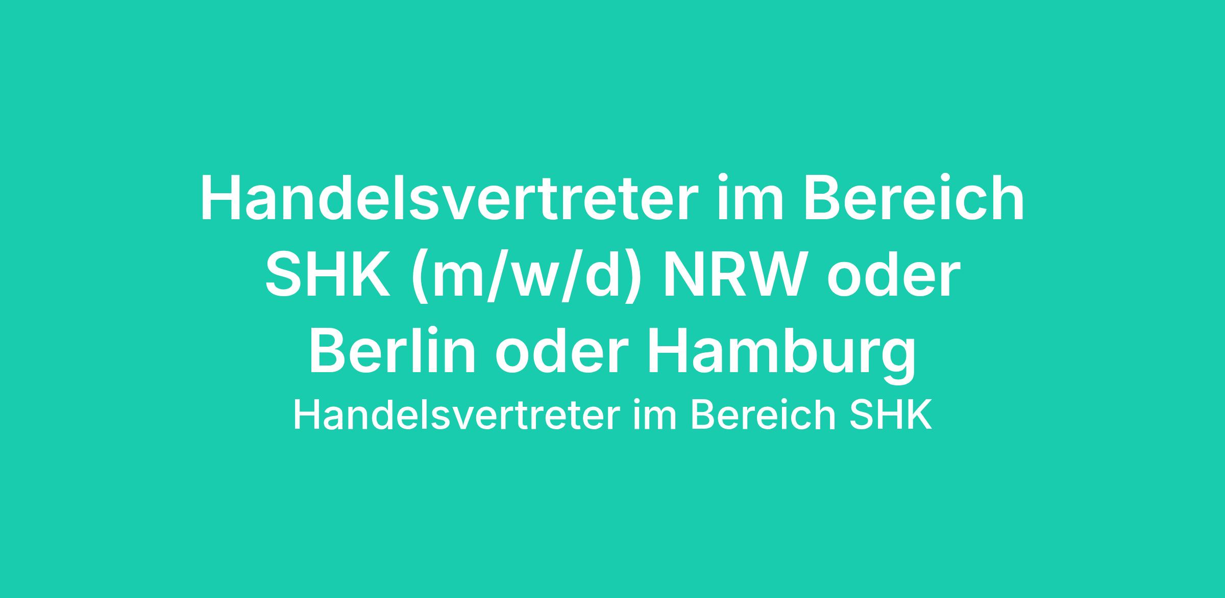 Handelsvertreter im Bereich SHK (m/w/d) NRW oder Berlin oder Hamburg