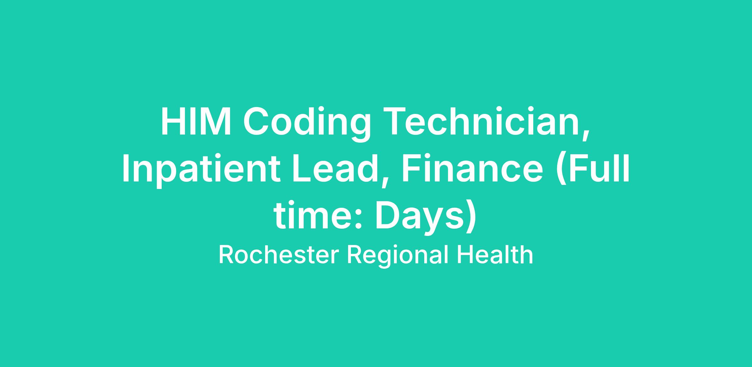 JOB TITLE: HIM Coding Technician Impatient Lead, Finance. Remote (Full time: Days)