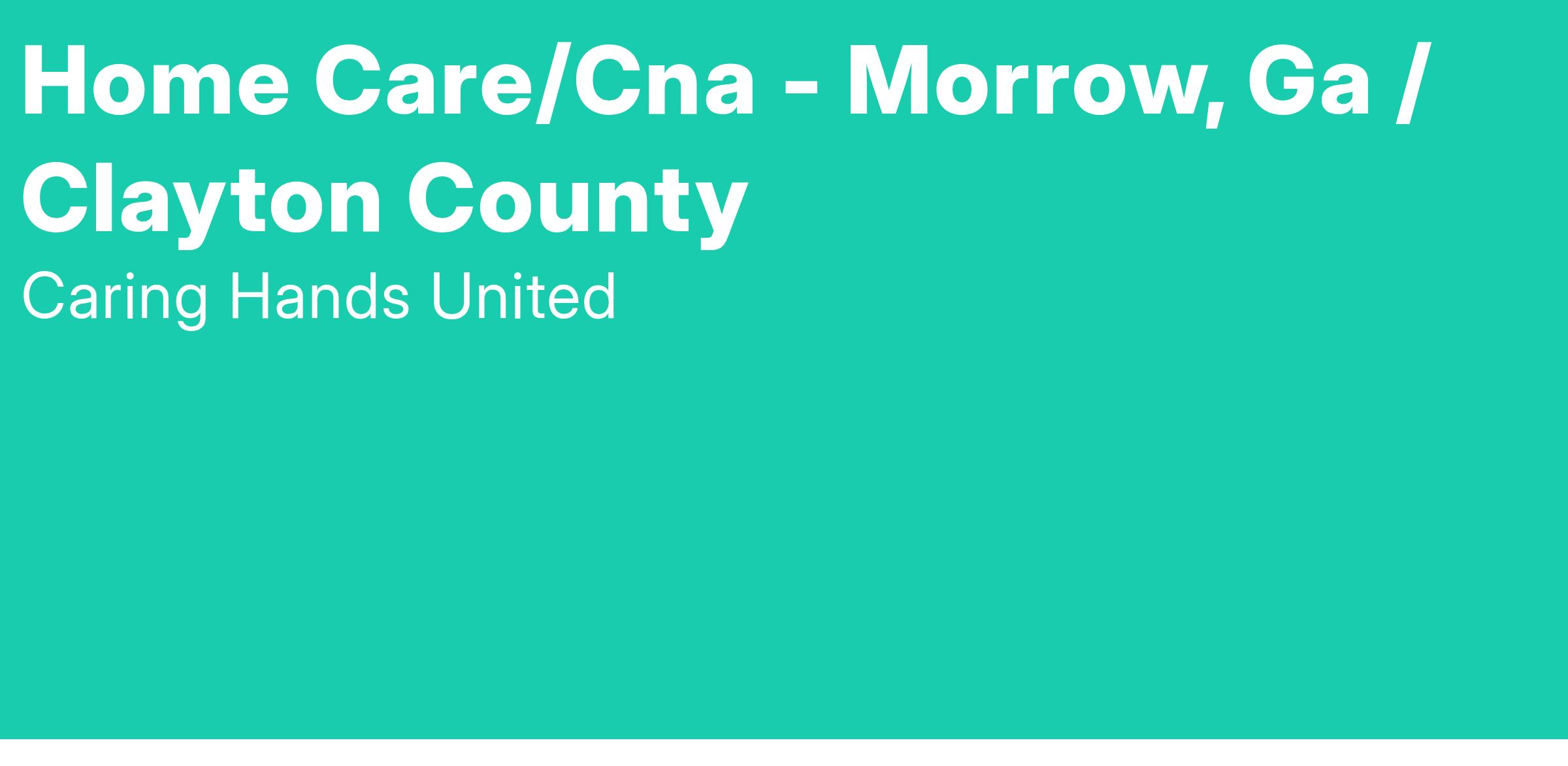 Caring Hands United Inc, is seeking compassionate a Part Time CNA in the Morrow, GA area to work within our client's homes providing support with daily living tasks and personal care under the supervision of a Registered Nurse and Staffing Coordinator. Must be able to travel to one or more client locations in the community and perform assigned direct care activities, basic personal care procedures, and training for clients in the community. We offer excellent wages, benefit, and flexible scheduling.