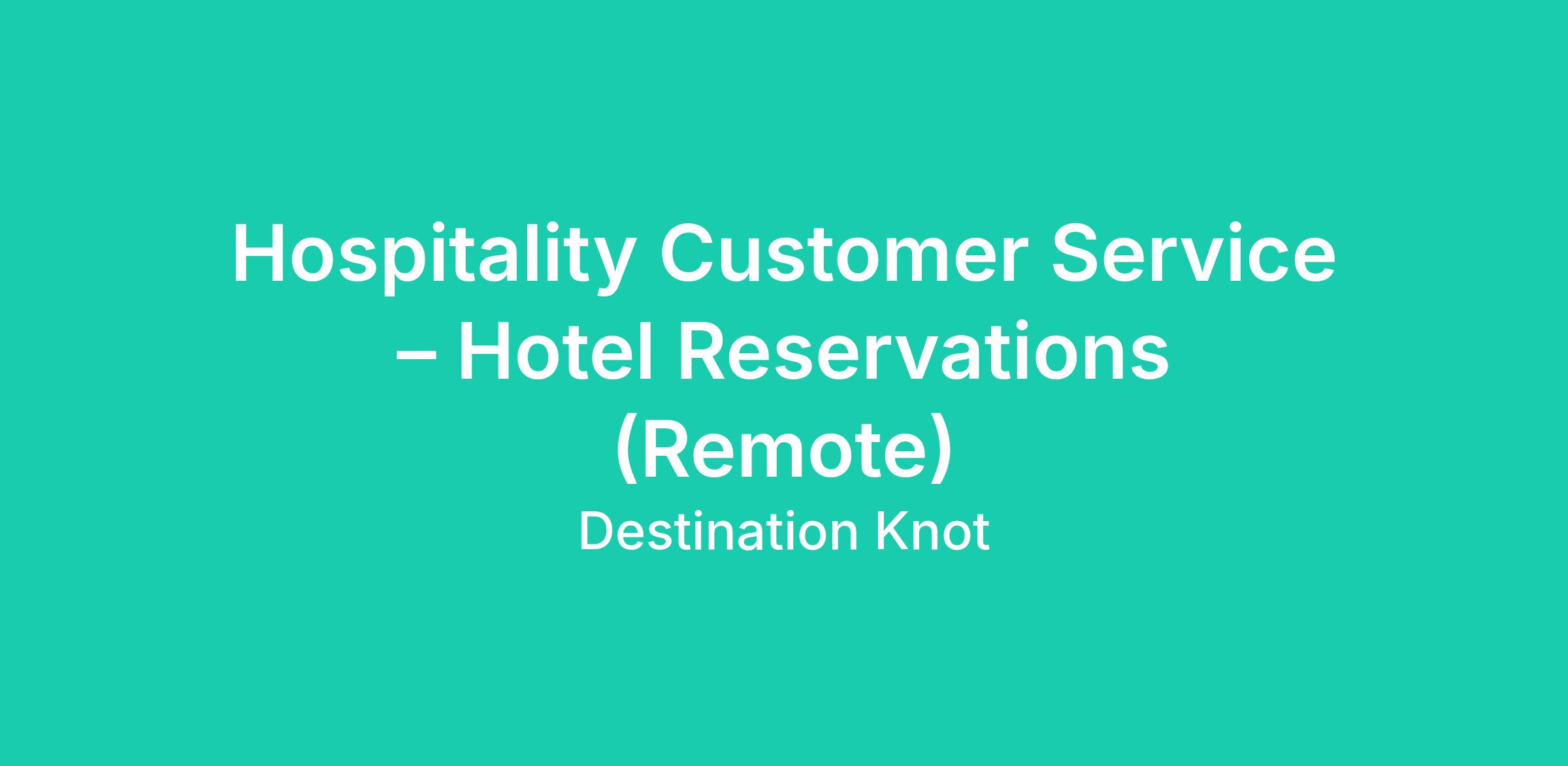 Hospitality Customer Service – Hotel Reservations (Remote)