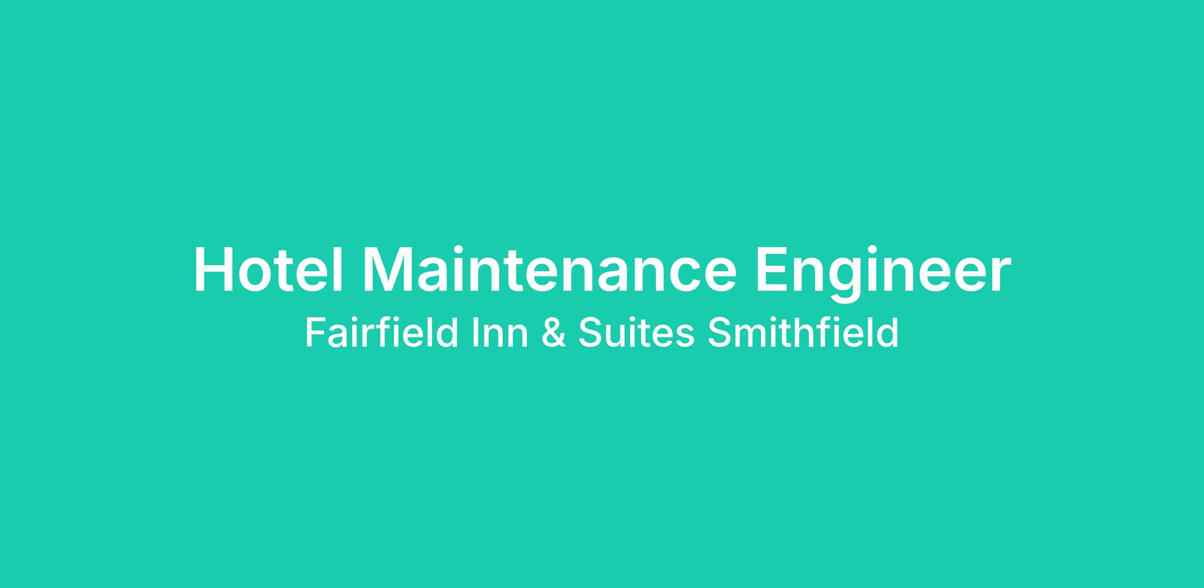 Join our dedicated team at [FAIRFIELD INN & SUITES SMITHFIELD / SELMA, NC], a premier hospitality destination renowned for exceptional service and comfort. We are committed to providing a safe, welcoming, and well-maintained environment for our guests. We are seeking a skilled and reliable Hotel Maintenance Engineer to ensure the smooth operation of our facilities.