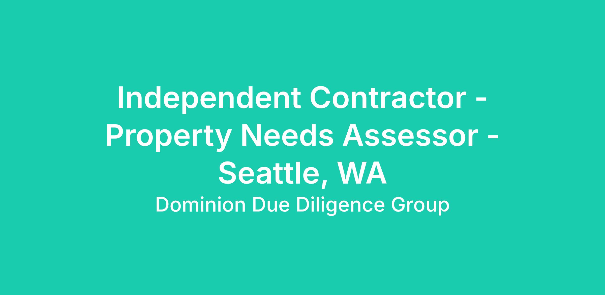 Independent Contractor - Property Needs Assessor - Seattle, WA