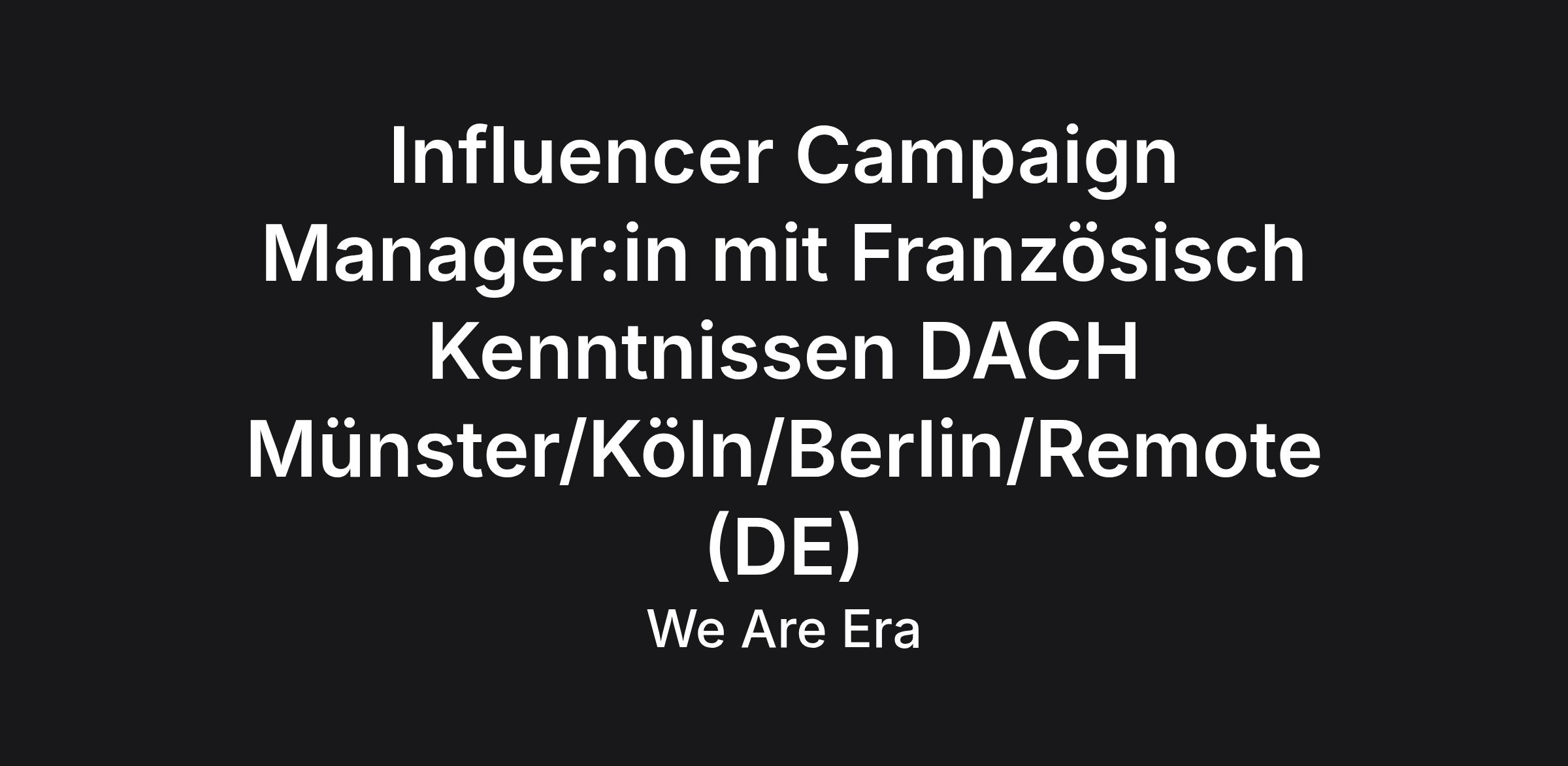 Influencer Campaign Manager:in mit Französisch Kenntnissen DACH Münster/Köln/Berlin/Remote (DE)