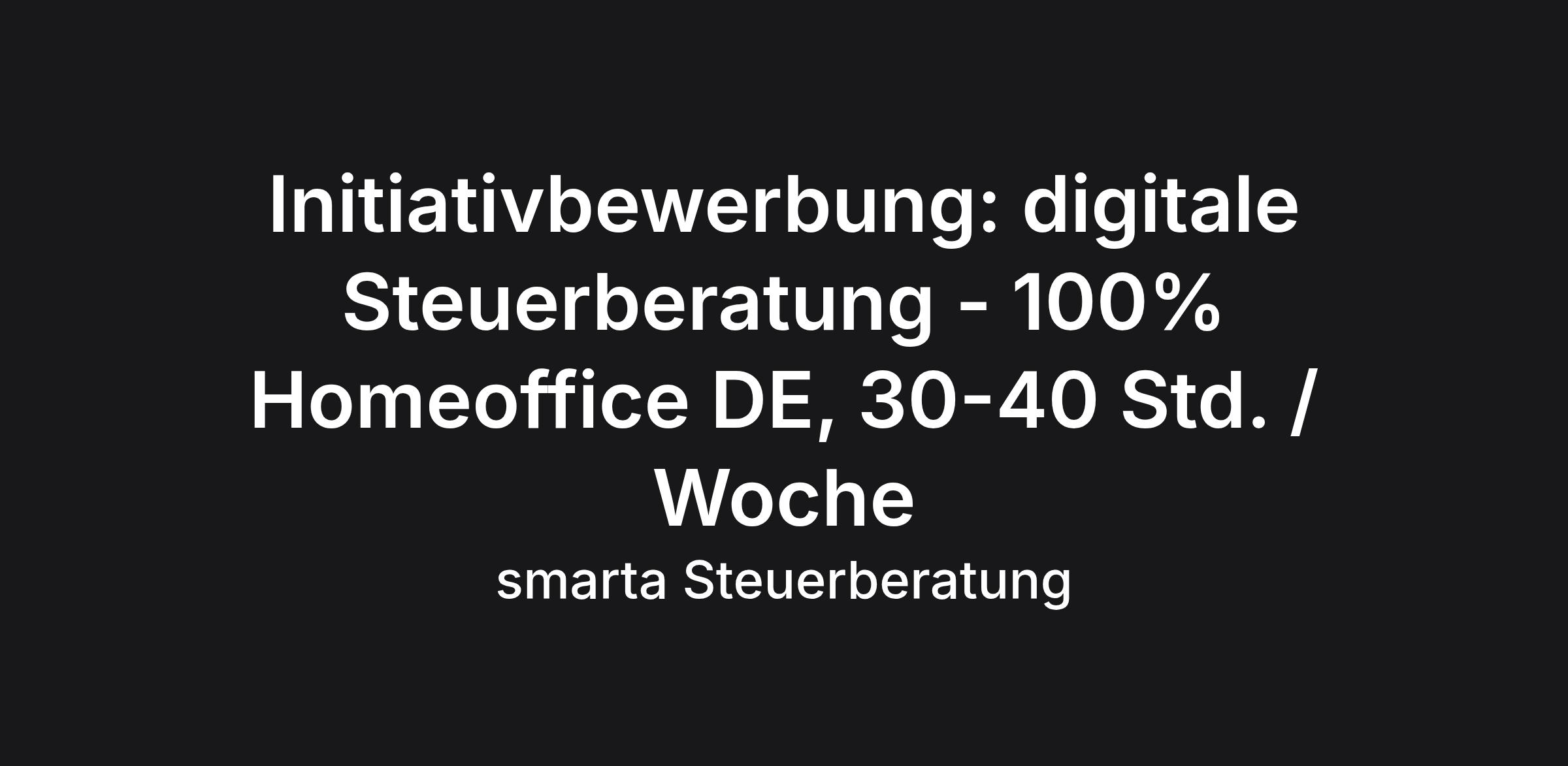 Initiativbewerbung: digitale Steuerberatung - 100% Homeoffice DE, 30-40 Std. / Woche