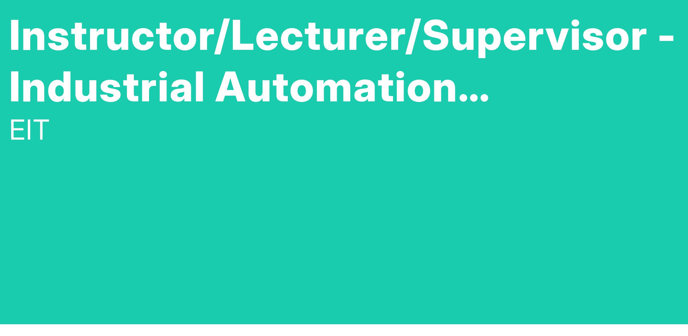 Instructor/Lecturer/Supervisor - Industrial Automation Engineering
