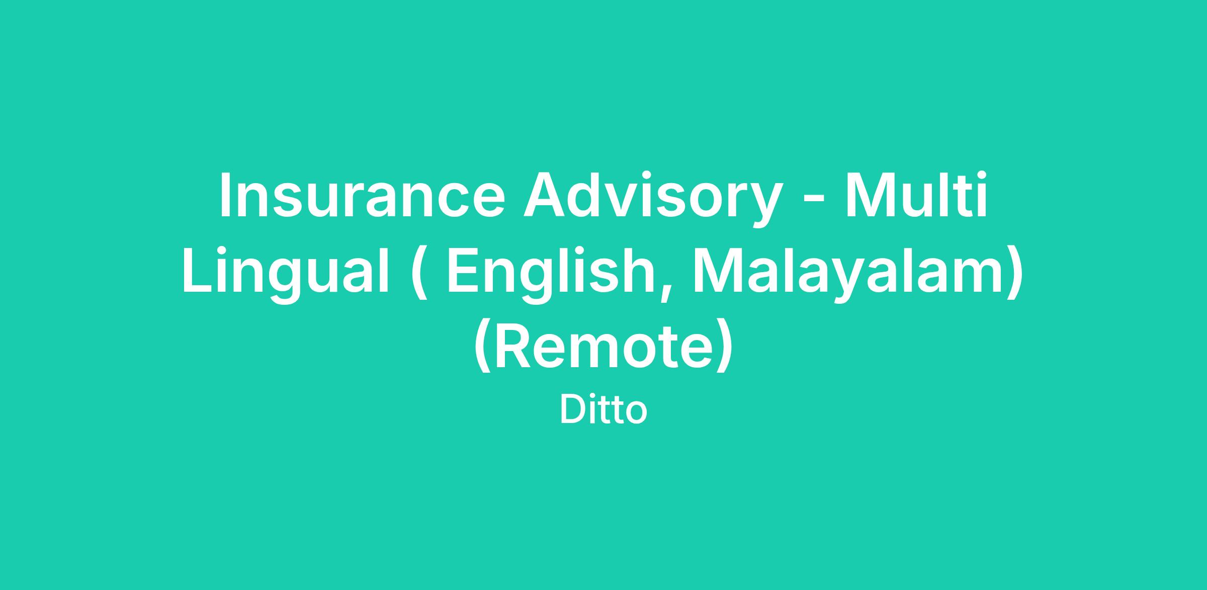Insurance Advisor - Malayalam and English.