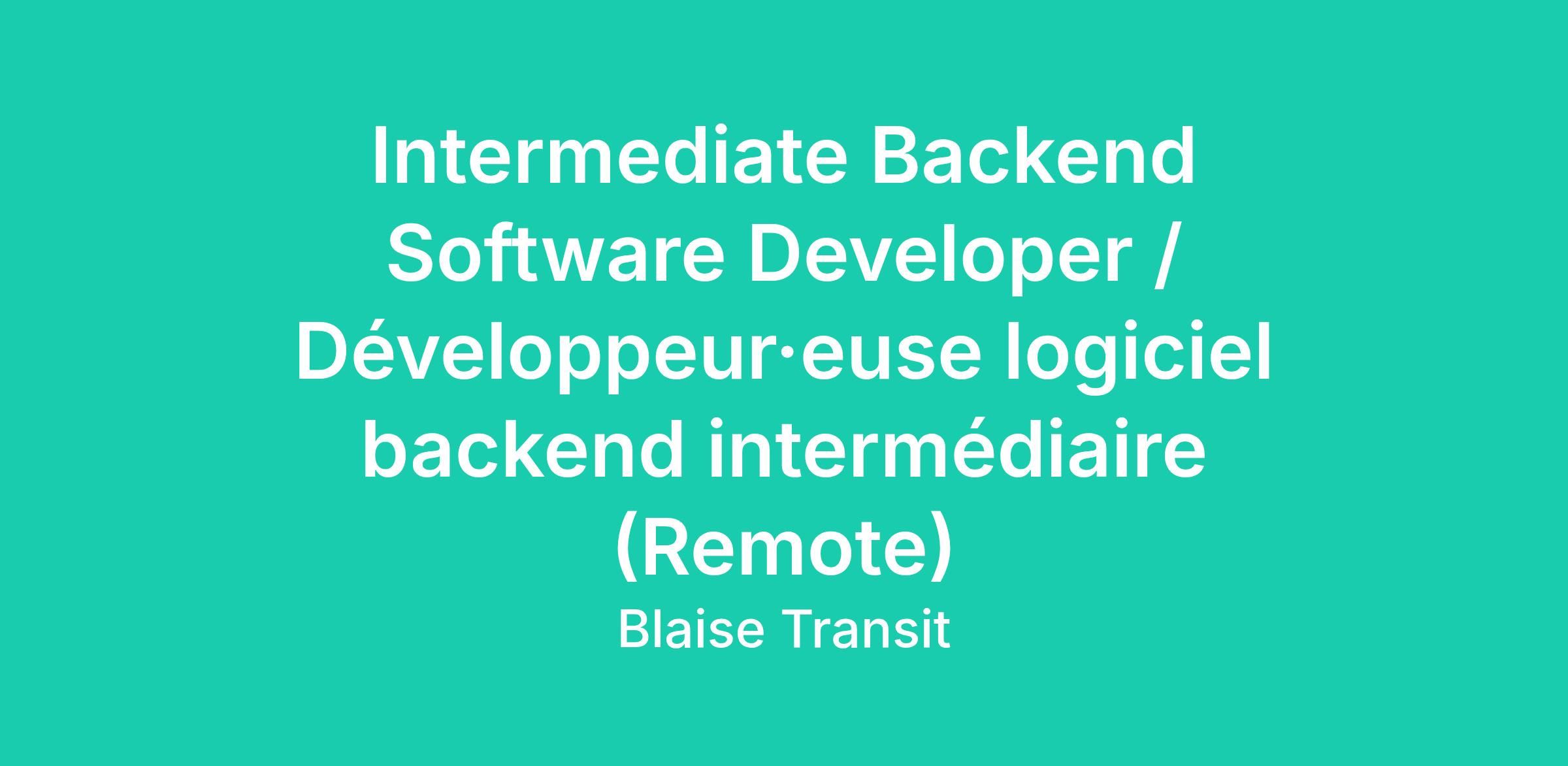 Job Title: Intermediate Backend Software Developer