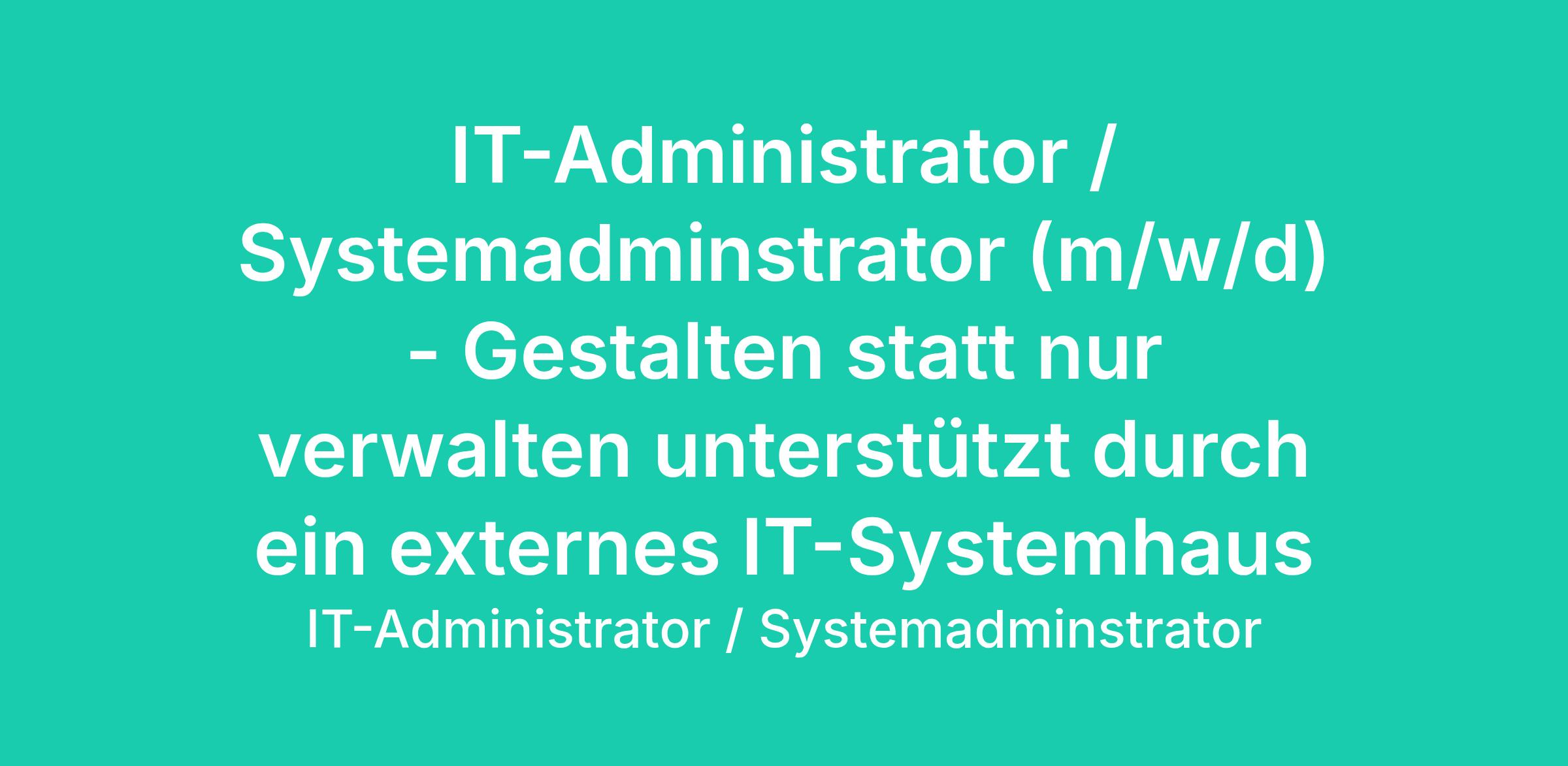 IT-Administrator / Systemadminstrator (m/w/d) - Gestalten statt nur verwalten unterstützt durch ein externes IT-Systemhaus