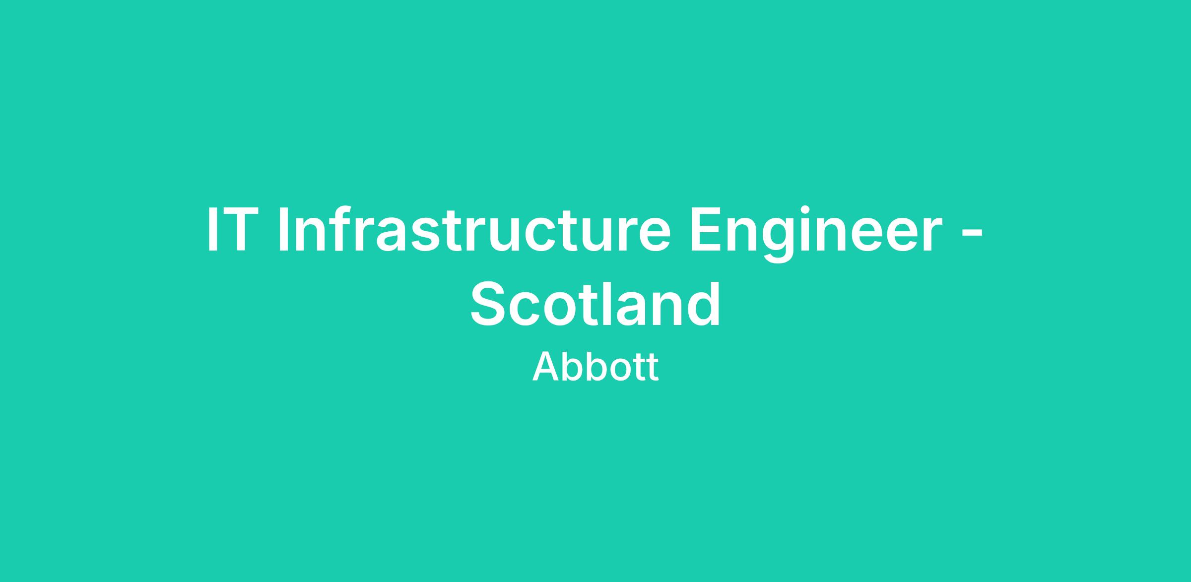 We’re looking for an IT Infrastructure Engineer - Scotland to Implement & support Complexed IT Infrastructure Solutions including implementation, optimization, and ongoing success of Abbott’s laboratory software solutions.