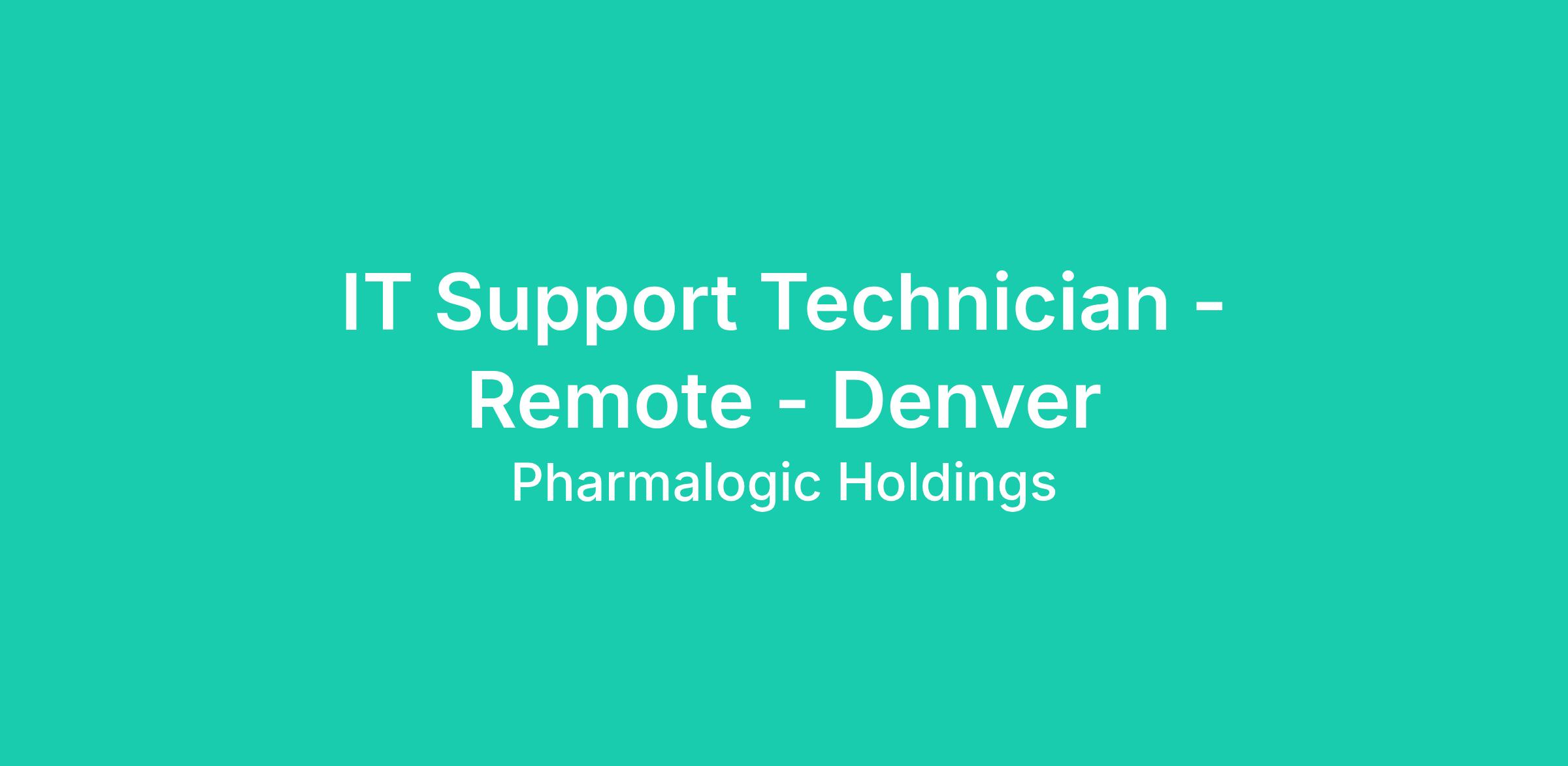IT Support Technician - Remote - Denver