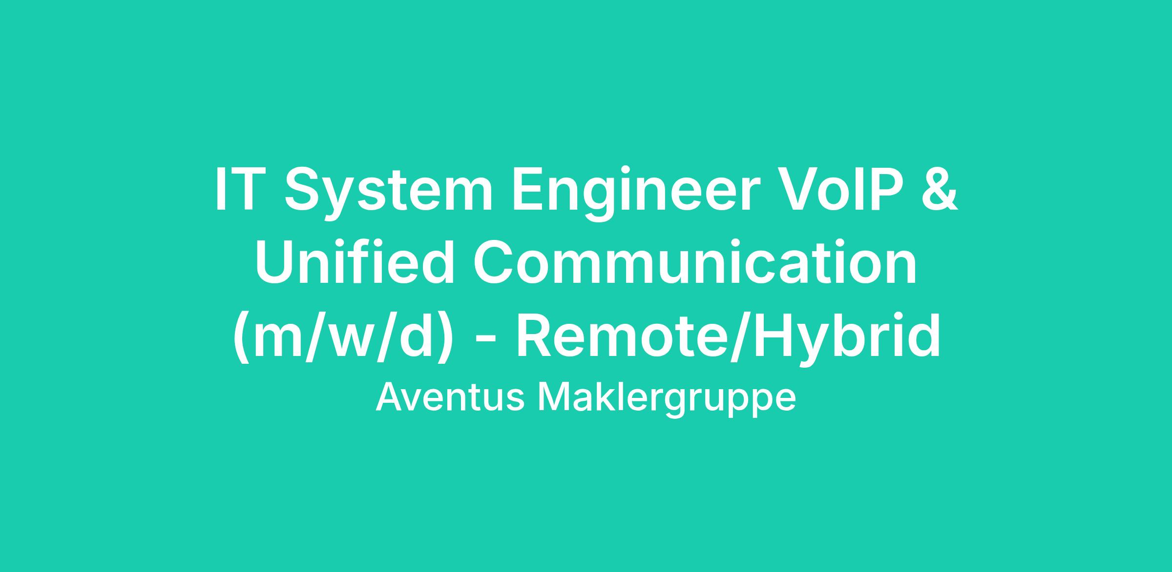 IT System Engineer VoIP & Unified Communication (m/w/d) - Remote/Hybrid