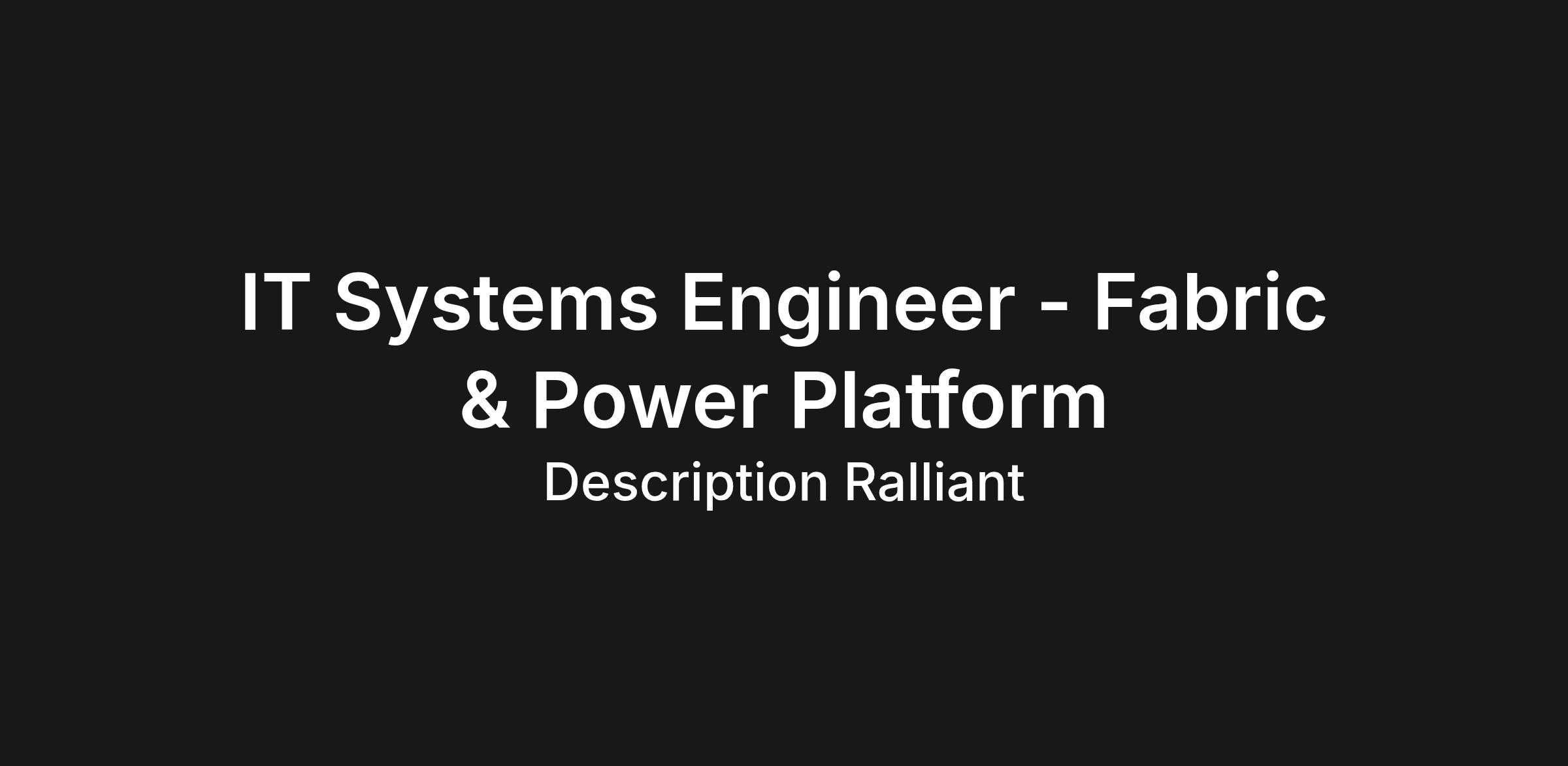 Ralliant is seeking a Microsoft 365 Power Platform Engineer to design and deliver analytics solutions with a strong focus on Microsoft Fabric, Power BI, and AI-enabled analytics strategy. This role will play a key part in enabling AI-ready data foundations, supporting Copilot experiences, and operationalizing analytics and insights across the organization in a secure, governed, and scalable manner.