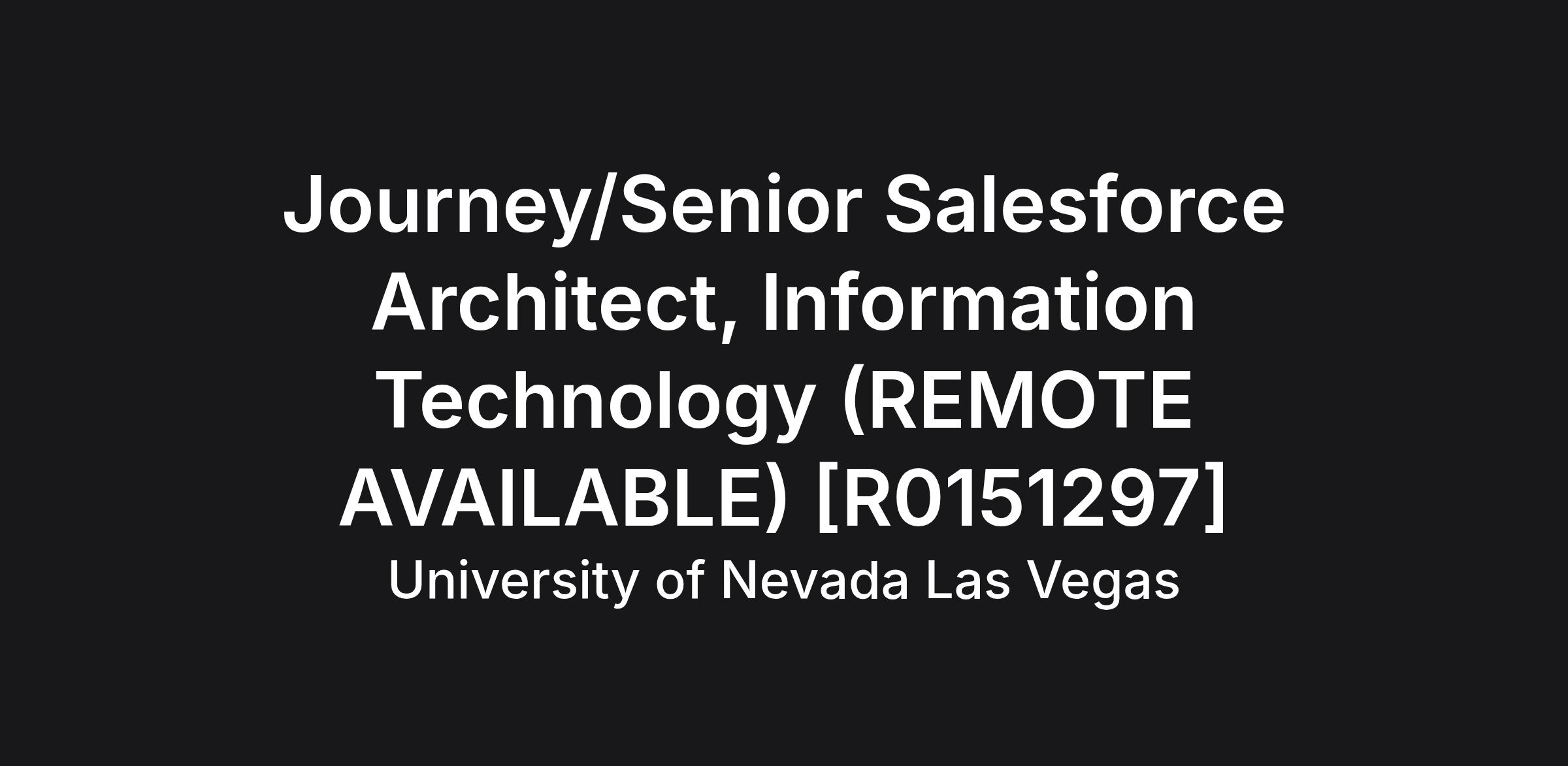 The University of Nevada, Las Vegas invites applications for a Journey/Senior Salesforce Architect, Information Technology (REMOTE AVAILABLE) [R0151297].