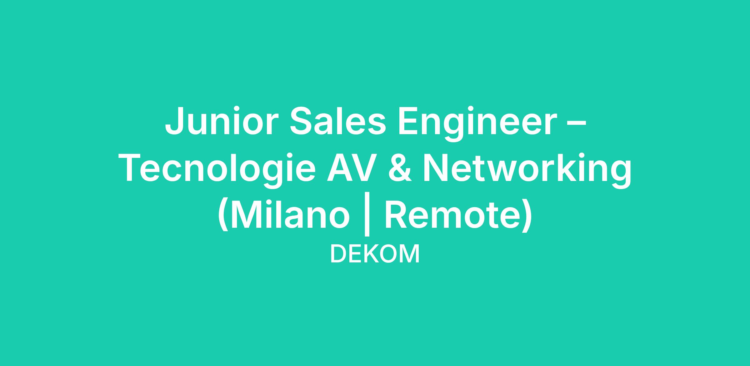 Junior Sales Engineer – Tecnologie AV & Networking (Milano | Remote)