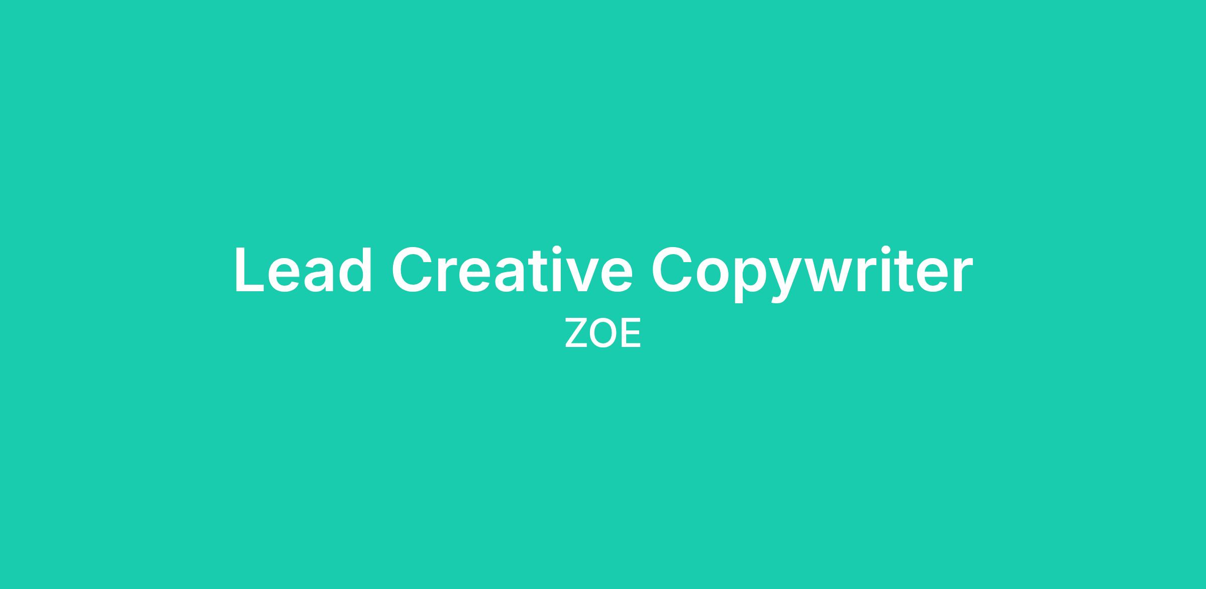 We have the science, the systems, and the data. Now, we need the "spark." We’re looking for a Lead Creative Copywriter to move ZOE from clear to compelling. You’ll lead our biggest campaign ideas and ensure our "red thread" of storytelling runs from a TV spot down to a performance ad.