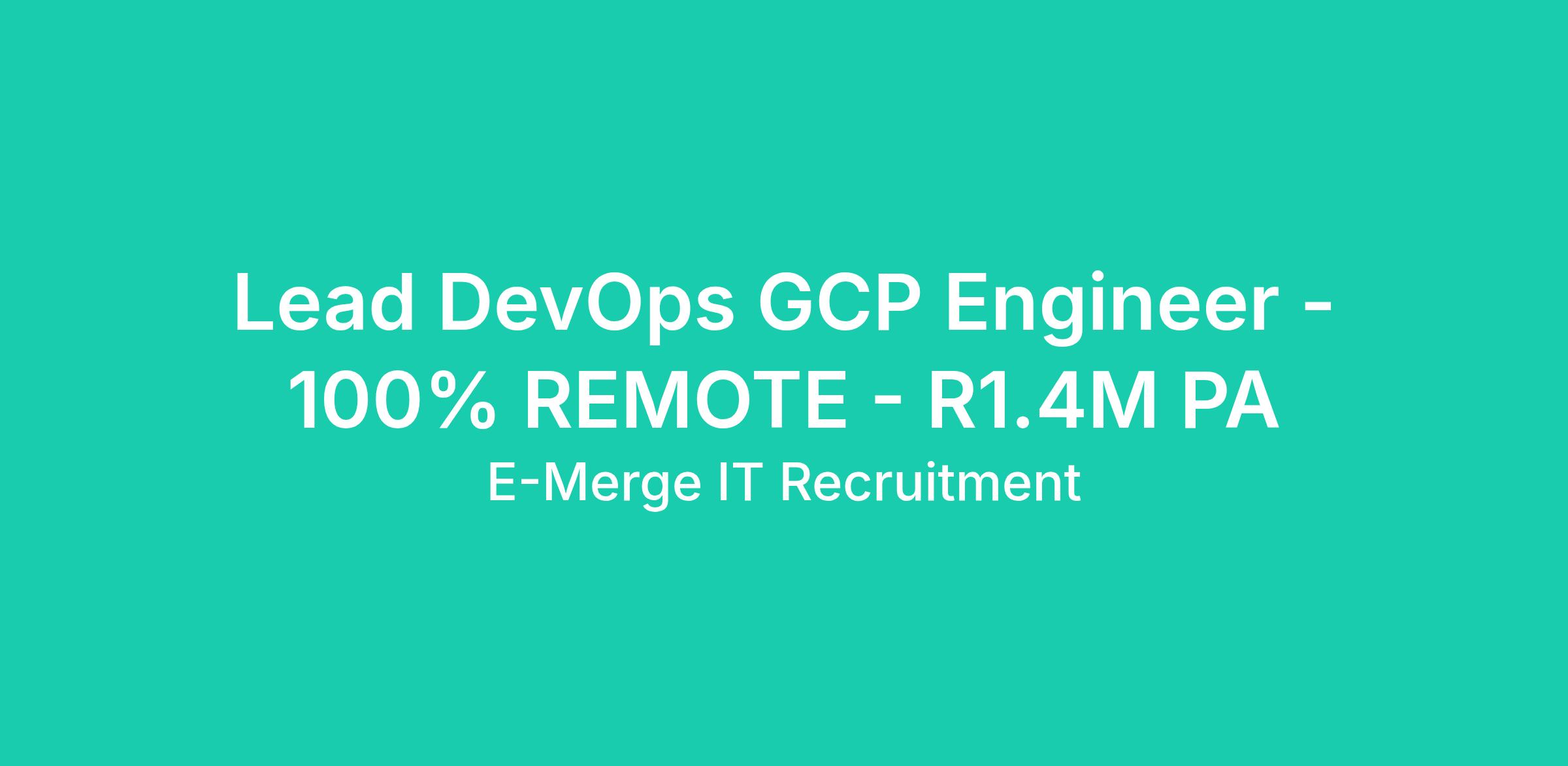 Reference Number for this position is GZ61084 which is a permanent REMOTE position offering a cost to company salary of R1.4m per annum negotiable on experience and ability. Contact Garth on garthz@e-merge.co.za or call him on 011 463 3633 to discuss this and other opportunities.