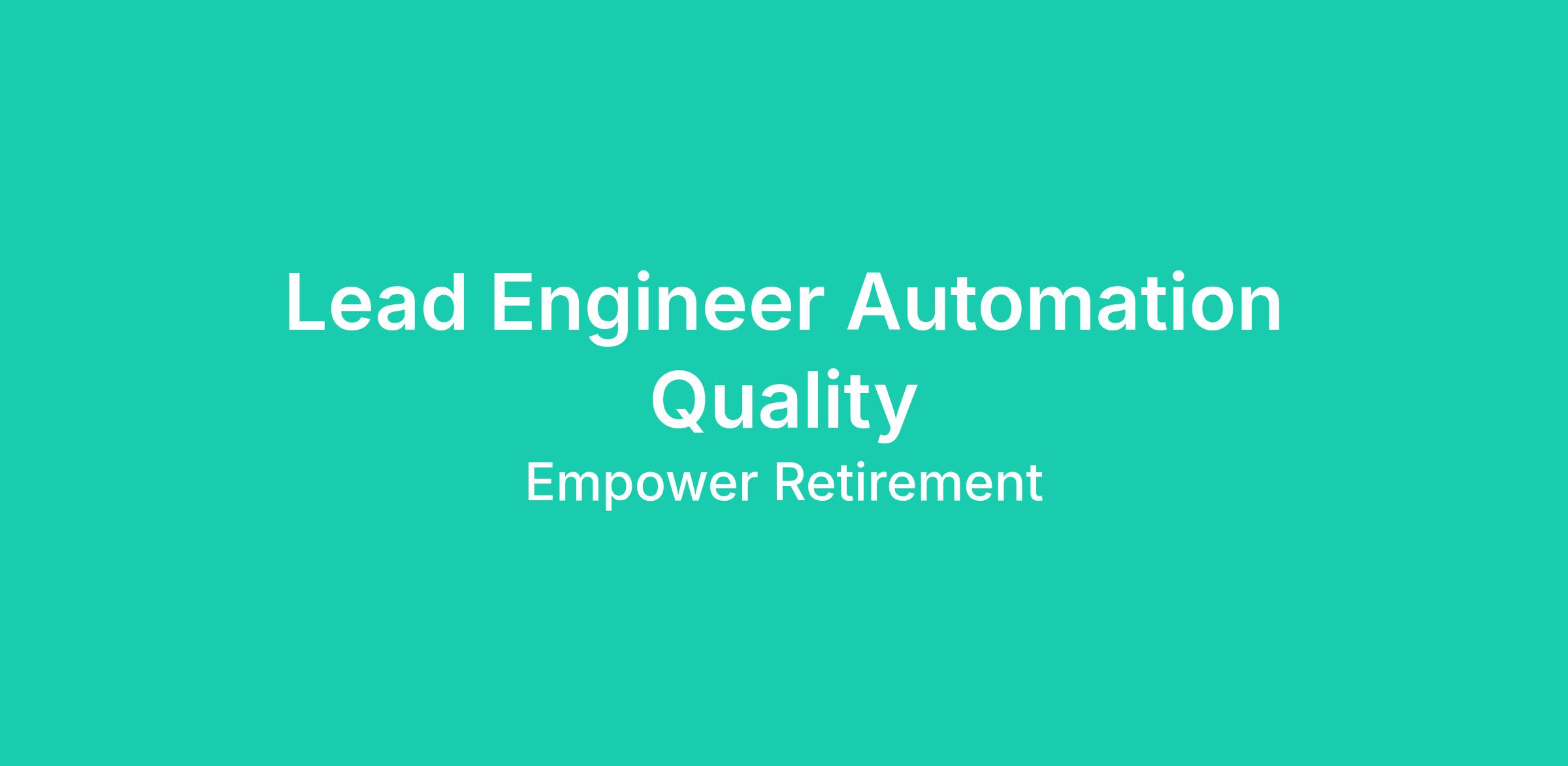 Lead Engineer Automation Quality