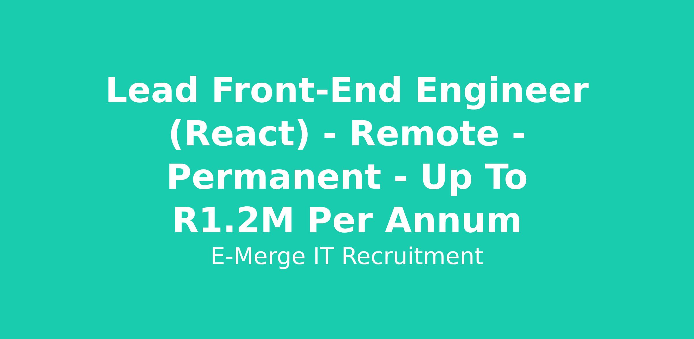 Reference Number for this position is CL61094, fully remote offering a cost to company salary of up to R1.2m per annum depending on experience and ability. Contact Candace on candacel@e-merge.co.za or call her on 011 463 3633 to discuss this and other opportunities.