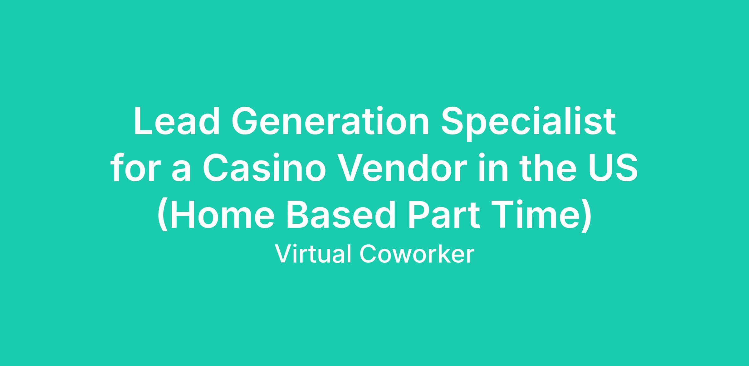 https:\/\/www.linkedin.com\/company\/virtual\-coworker"}],"isMobile":false,"iframe":"true","jobType":"Part time","applyName":"Apply Now!","zsoid":"8208015","FontFamily":"Arial, Helvetica, sans\-serif","jobOtherDetails":[{"fieldLabel":"Job Category","uitype":2,"value":"Sales\/Lead Generation"},{"fieldLabel":"Work Schedule","uitype":1,"value":"Monday to Friday 9am \- 1pm Pacific Standard TIme"},{"fieldLabel":"Hours Per Day","uitype":2,"value":"Part Time â 4 hours per day"},{"fieldLabel":"Industry","uitype":2,"value":"Technology"},{"fieldLabel":"Work Location","uitype":1,"value":"Home Based \- Philippines"},{"fieldLabel":"City","uitype":1,"value":"Nevada"},{"fieldLabel":"State\/Province","uitype":1,"value":"Las Vegas"},{"fieldLabel":"Zip\/Postal Code","uitype":1,"value":"89110"}],"headerName":"Lead Generation Specialist for a Casino Vendor in the US (Home Based Part Time)","widgetId":"147741000000390320","isJobBoard":"false","userId":"147741000000027001","attachArr":[],"customTemplate":"3","isCandidateLoginEnabled":true,"jobId":"147741000073447322","FontSize":"12","location":"Nevada","embedsource":"CareerSite","logoId":"idwop0ece2fcac21a443ba16938fb832bdc3b"}