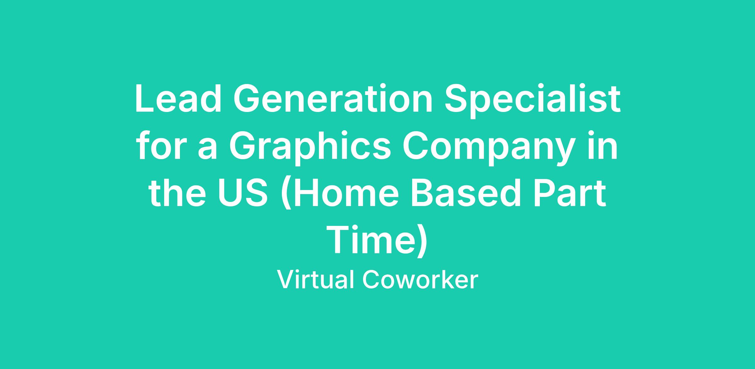 https:\/\/www.linkedin.com\/company\/virtual\-coworker"}],"isMobile":false,"iframe":"true","jobType":"Part time","applyName":"Apply Now!","zsoid":"8208015","FontFamily":"Arial, Helvetica, sans\-serif","jobOtherDetails":[{"fieldLabel":"Job Category","uitype":2,"value":"Sales\/Lead Generation"},{"fieldLabel":"Work Schedule","uitype":1,"value":"Monday to Friday, 9 am \- 1 pm Pacific Standard Time"},{"fieldLabel":"Hours Per Day","uitype":2,"value":"Part Time â 4 hours per day"},{"fieldLabel":"Industry","uitype":2,"value":"Technology"},{"fieldLabel":"Work Location","uitype":1,"value":"Home Based \- Philippines"},{"fieldLabel":"City","uitype":1,"value":"Santa Cruz"},{"fieldLabel":"State\/Province","uitype":1,"value":"California"},{"fieldLabel":"Zip\/Postal Code","uitype":1,"value":"95060"}],"headerName":"Lead Generation Specialist for a Graphics Company in the US (Home Based Part Time)","widgetId":"147741000000390320","isJobBoard":"false","userId":"147741000000027001","attachArr":[],"customTemplate":"3","isCandidateLoginEnabled":true,"jobId":"147741000070758041","FontSize":"12","location":"Santa Cruz","embedsource":"CareerSite","logoId":"idwop0ece2fcac21a443ba16938fb832bdc3b"}