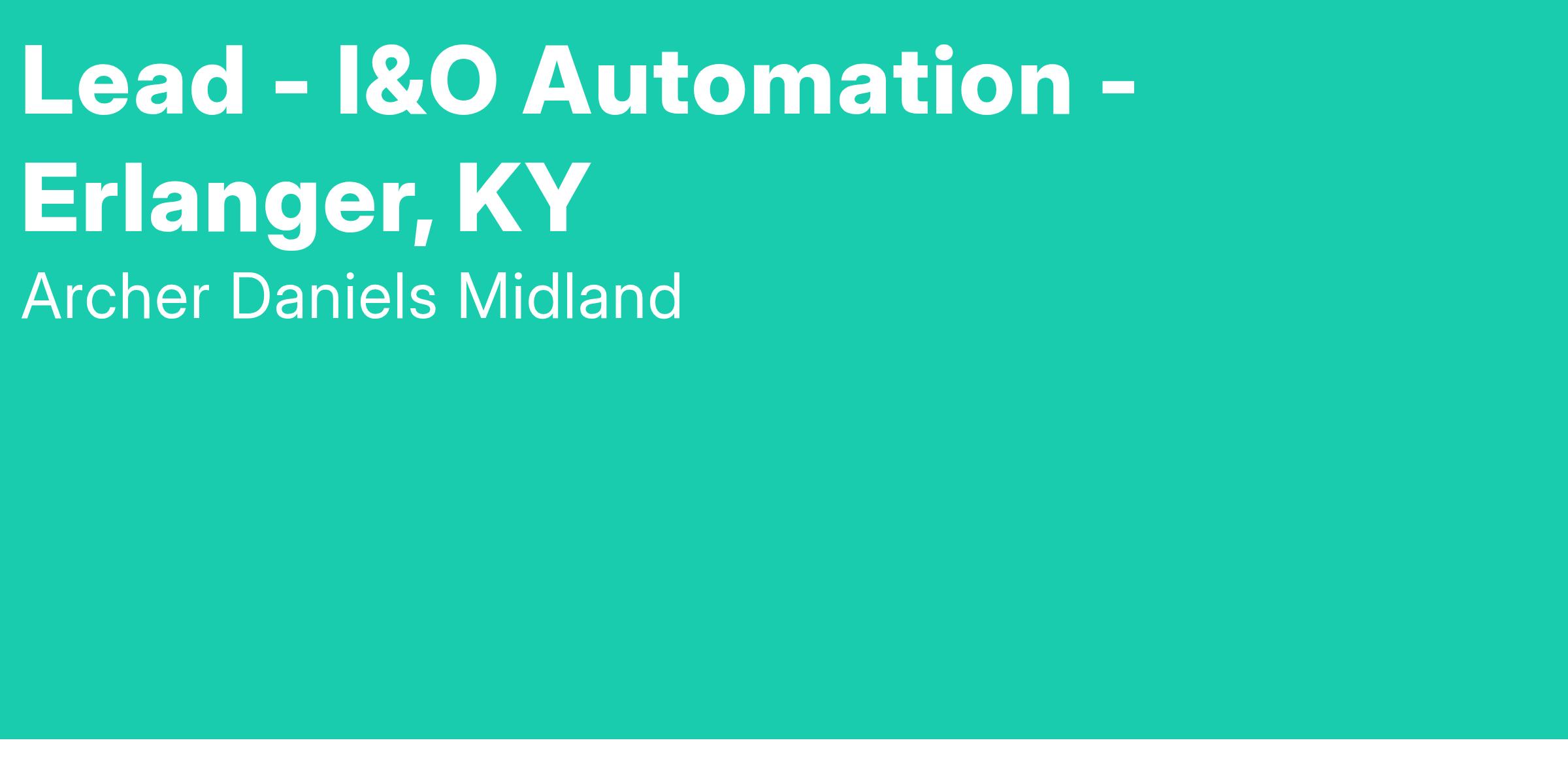 Lead - I&O Automation - Erlanger, KYThis is an exempt level position.