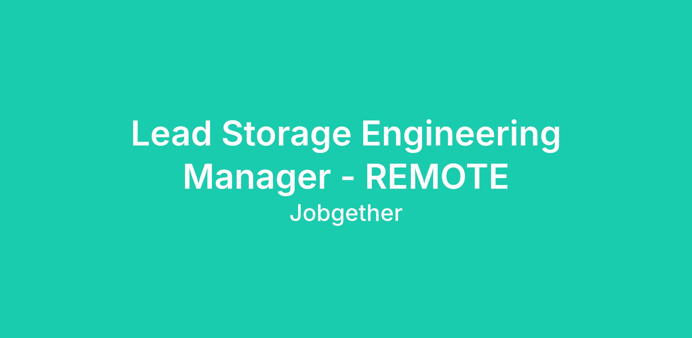 Lead Storage Engineering Manager - REMOTE