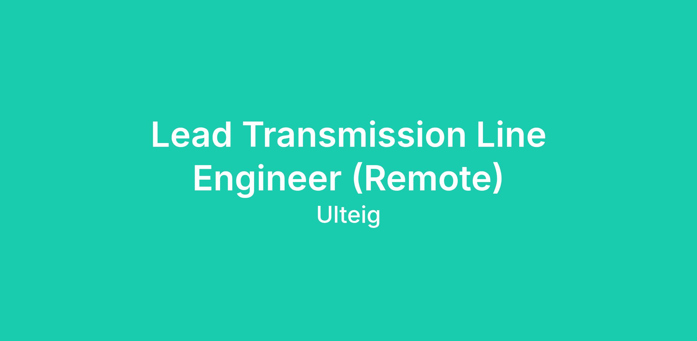 Ulteig is currently seeking talented and motivated Lead Engineer level candidates to join our Transmission Line group. This position is responsible for the design of High Voltage (69kV-500kV) transmission lines utilizing the PLS-CADD software. This position is open to sit in any location or remote.