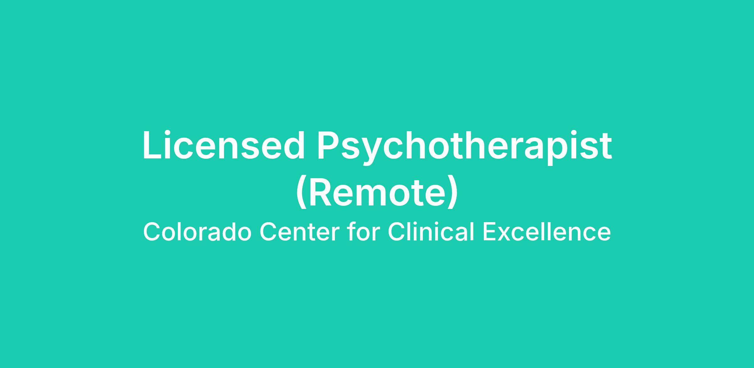 Location: This is a remote role with Colorado licensure required