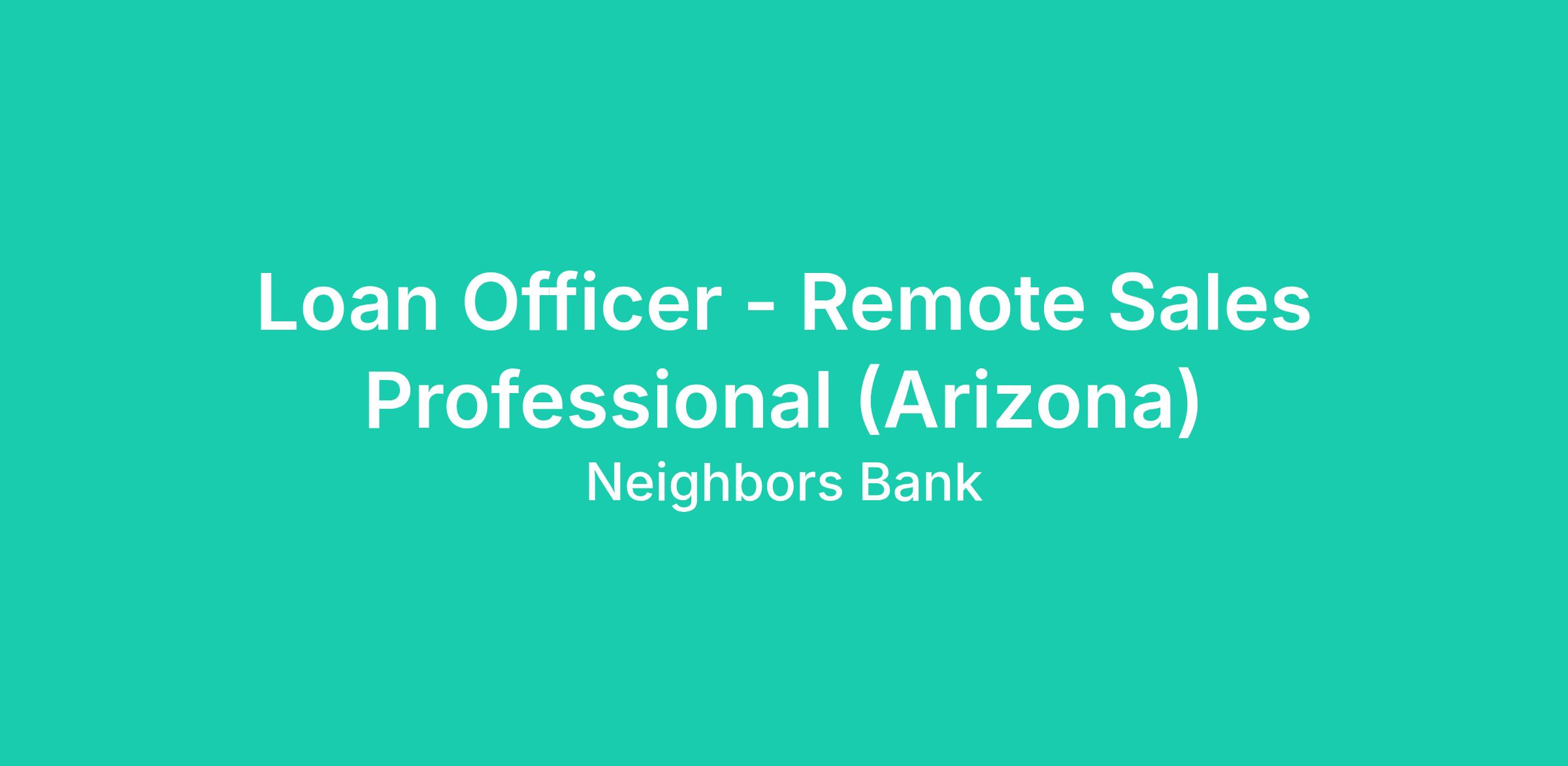 Neighbors Bank is active in the state of Arizona for this posting. Unfortunately we cannot consider any exceptions to this location requirement.