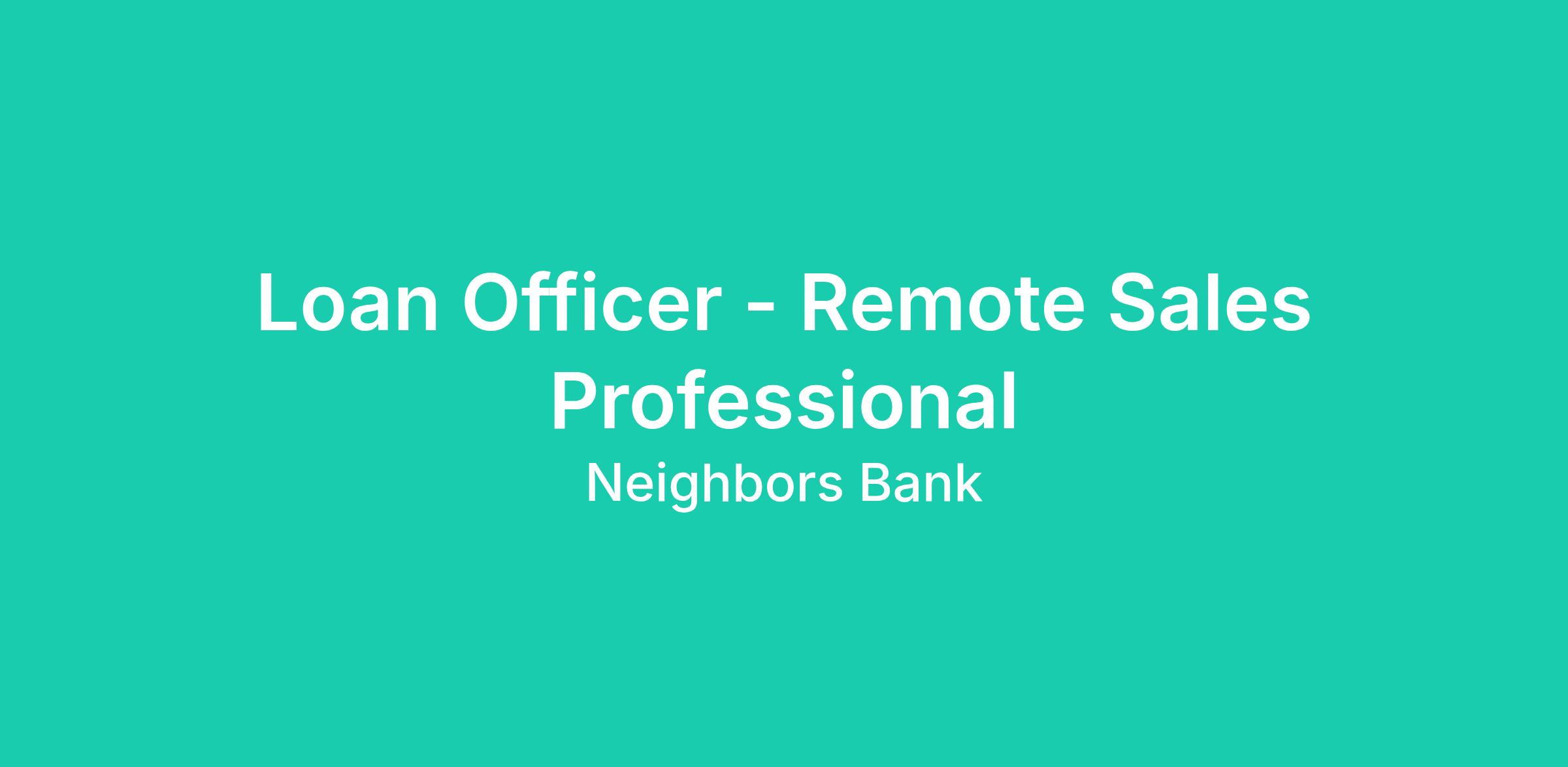 Neighbors Bank is a leading innovator in the mortgage industry, and looking for individuals that thrive on challenges, adapt quickly to change, and want to earn uncapped commissions based on performance.