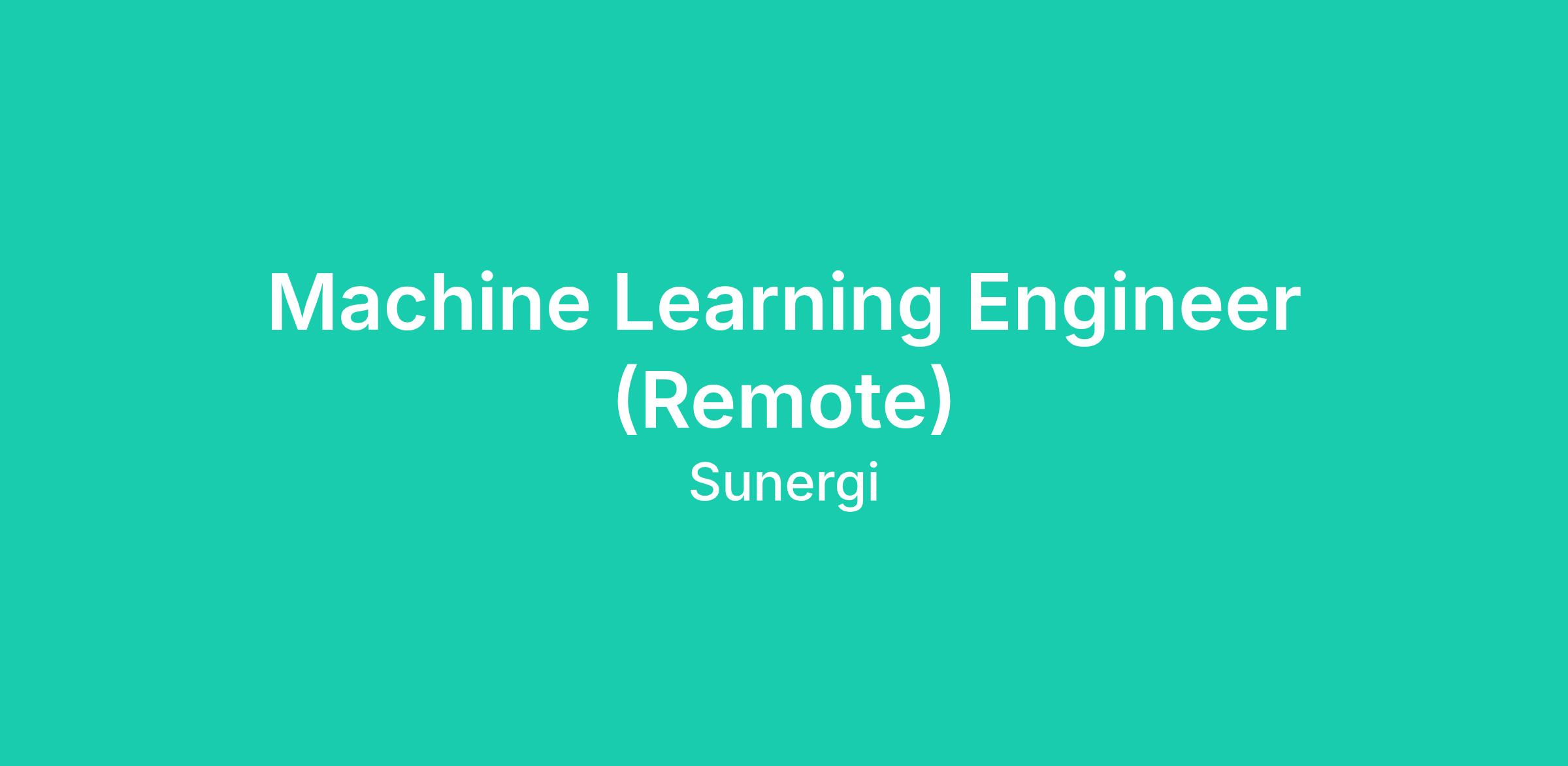Machine Learning Engineer (Remote)