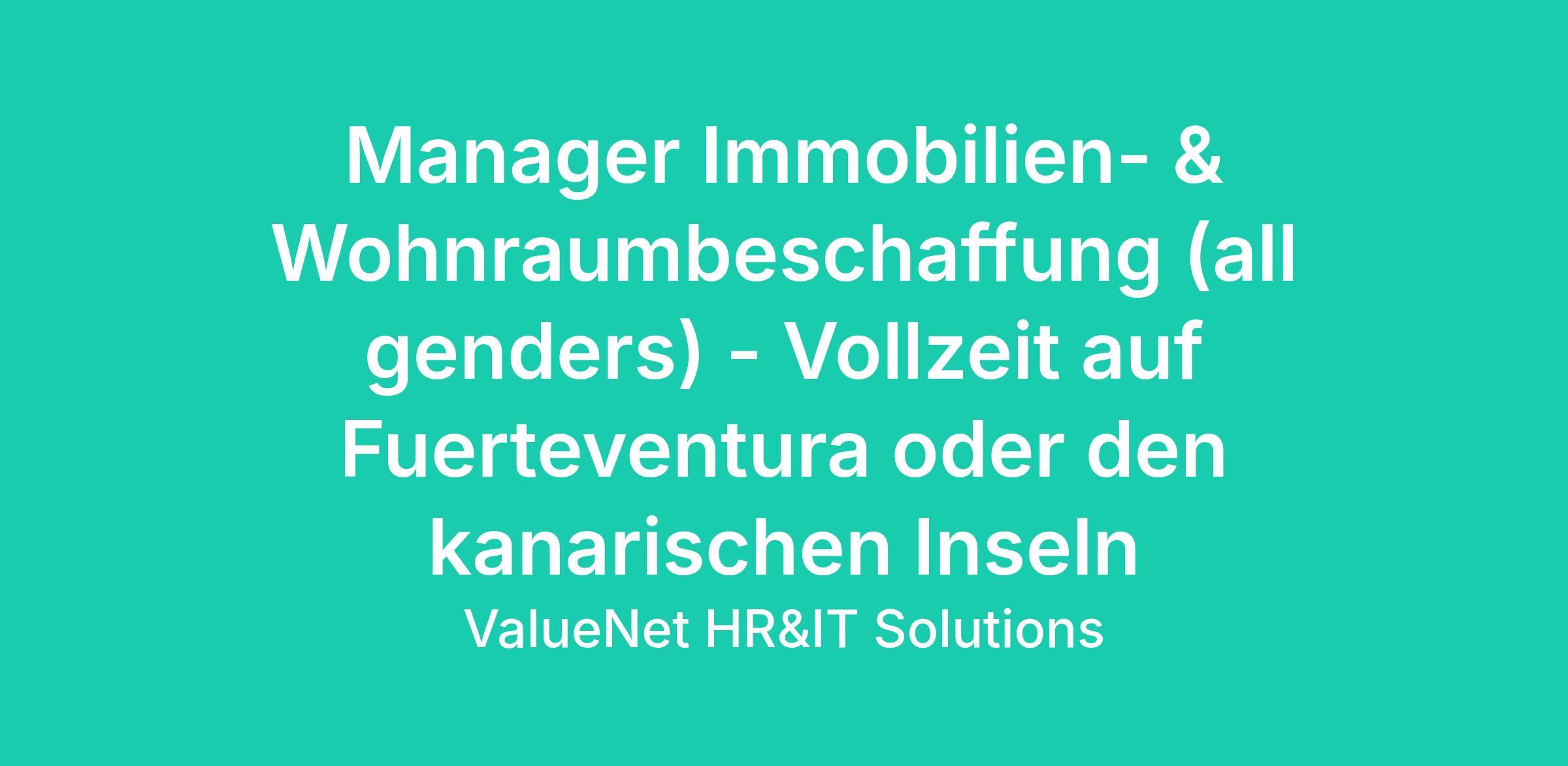Manager Immobilien- & Wohnraumbeschaffung (all genders) - Vollzeit auf Fuerteventura oder den kanarischen Inseln