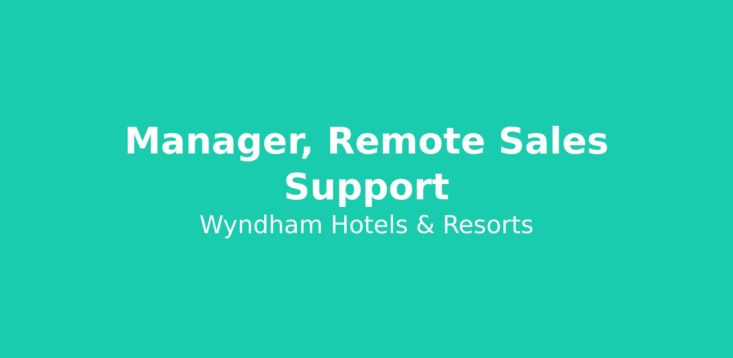 Wyndham Hotels & Resorts is now seeking a Manager, Remote Sales Support to join our team at the Remote in the United States location in Remote, Remote.