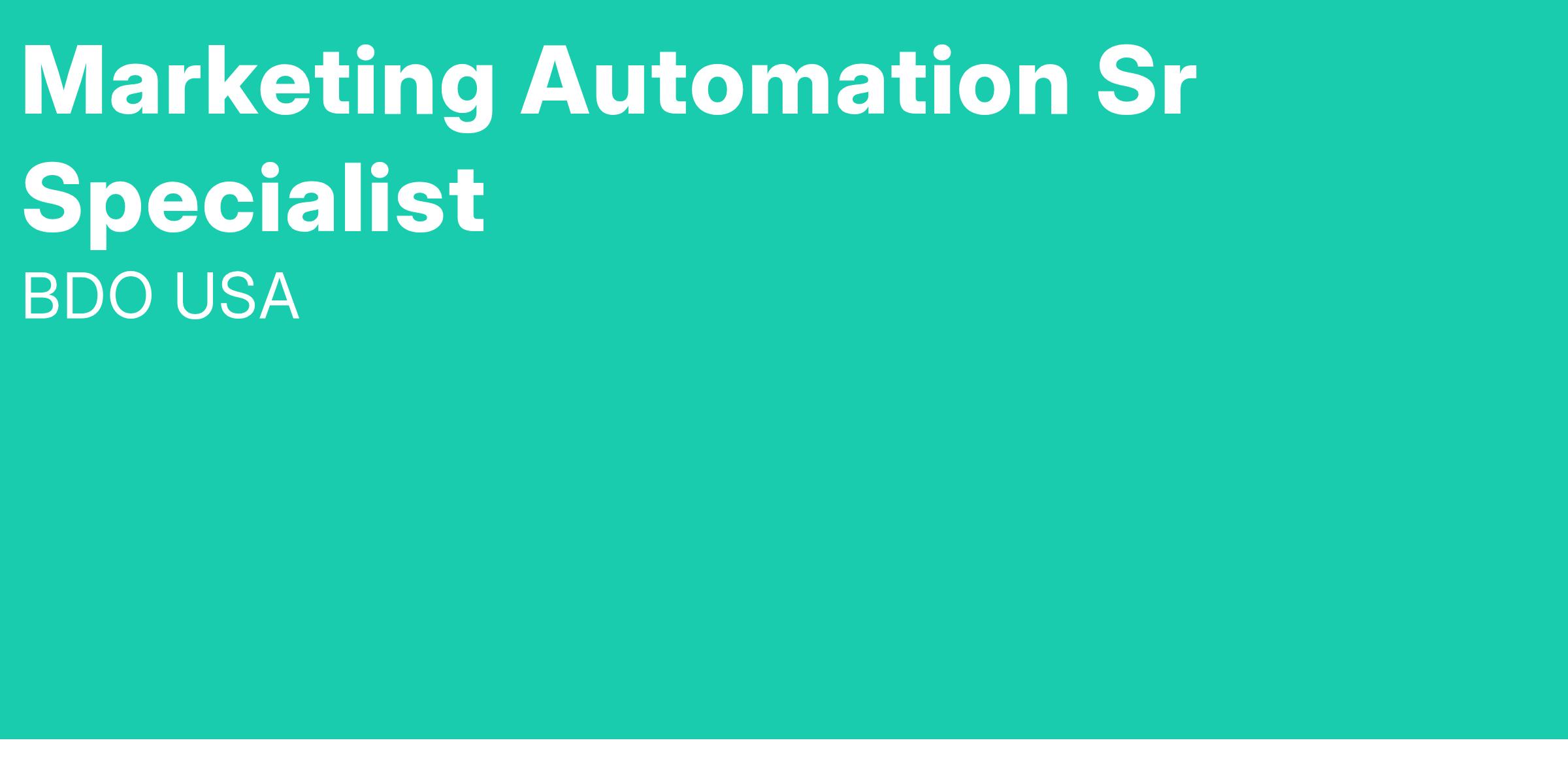 The Marketing Automation Sr. Specialist is responsible for supporting programmatic and operational initiatives within the firm’s marketing automation platform (MAP) Marketo. Responsibilities for this role include executing demand generation campaigns, supporting marketing operations initiatives (lead life cycle, lead scoring, lead nurturing), creating marketing automation programs, and implementing best practices.