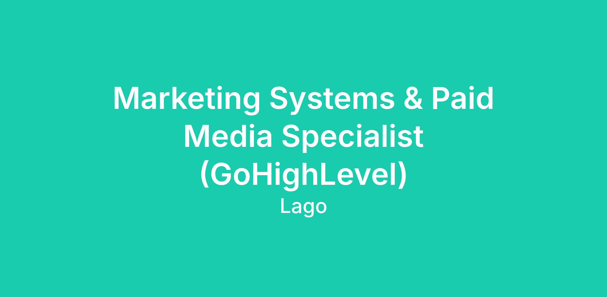 DescriptionJob Title: Marketing Systems & Paid Media Specialist (GoHighLevel)l