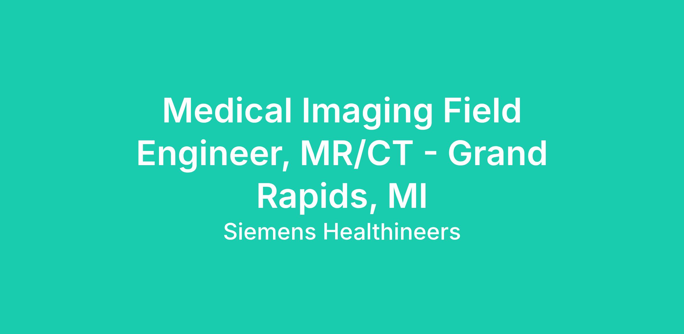You will be servicing MR/CT Imaging Equipment in the Grand Rapids, MI area. Customer Service Engineer Level based on prior experience.