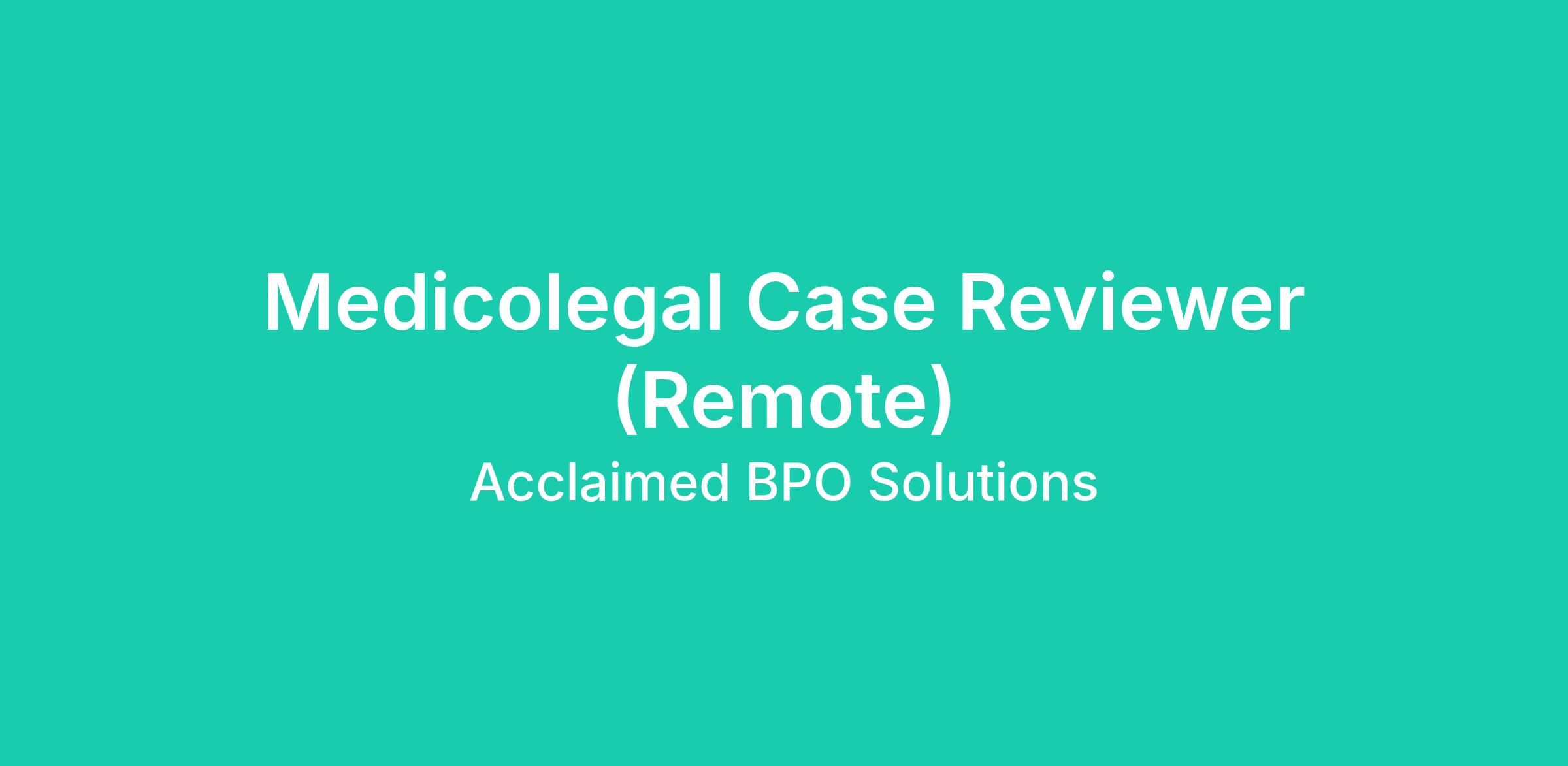 Medicolegal Case Reviewer (Remote)