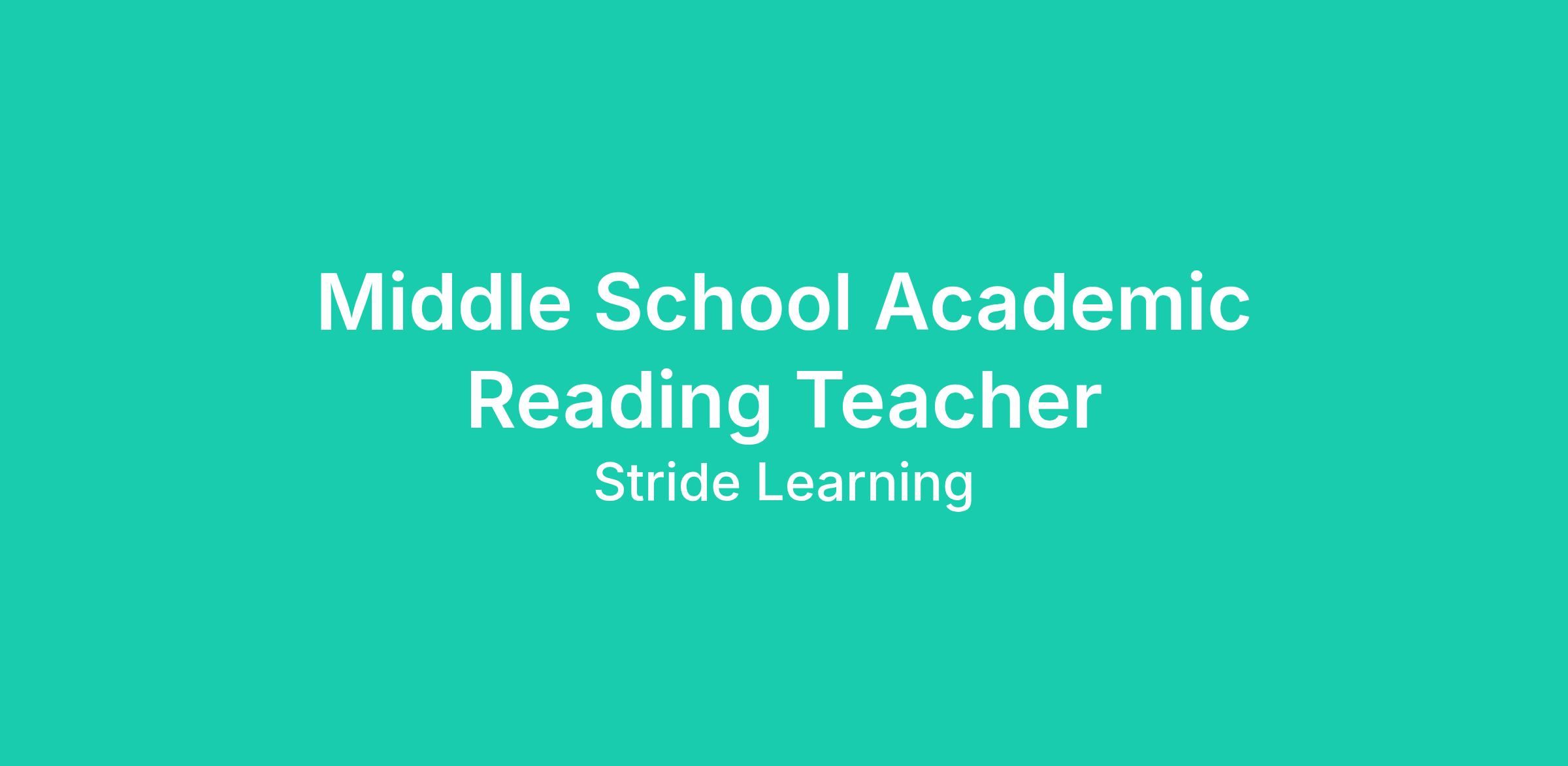 The Middle School Reading Teacher is a highly qualified, state certified educator responsible for delivering specific course content in an online environment. Middle School Reading Teachers provide instruction, support, and guidance, manage the learning process, and focus on students’ individual needs. Middle School Reading Teachers monitor student progress through Stride K12’s learning management system. They actively work closely with students and parents/learning coaches to advance each student’s learning toward established goals. Middle School Reading Teachers typically work from home but must travel occasionally throughout the year to various school functions, such as state testing or as otherwise required by the school.
