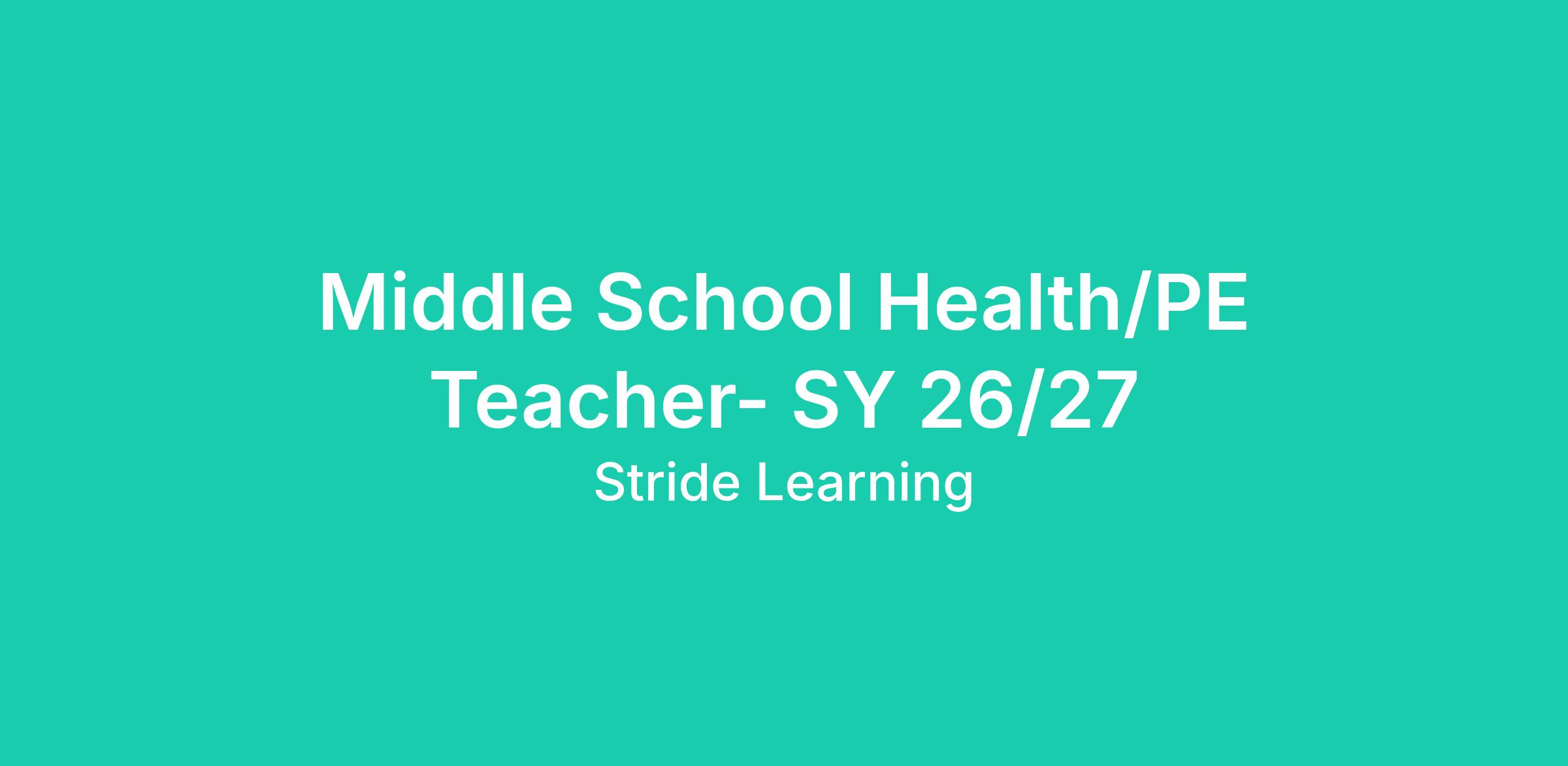 The remote Middle School PE Teacher is a highly qualified, state certified educator responsible for delivering specific course content in an online environment. Teachers provide instruction, support, and guidance, manage the learning process, and focus on students’ individual needs. Teachers monitor student progress through Stride K12’s learning management system. They actively work closely with students and parents/learning coaches to advance each student’s learning toward established goals. Teachers typically work from home but must travel occasionally throughout the year to various school functions, such as state testing or as otherwise required by the school.
