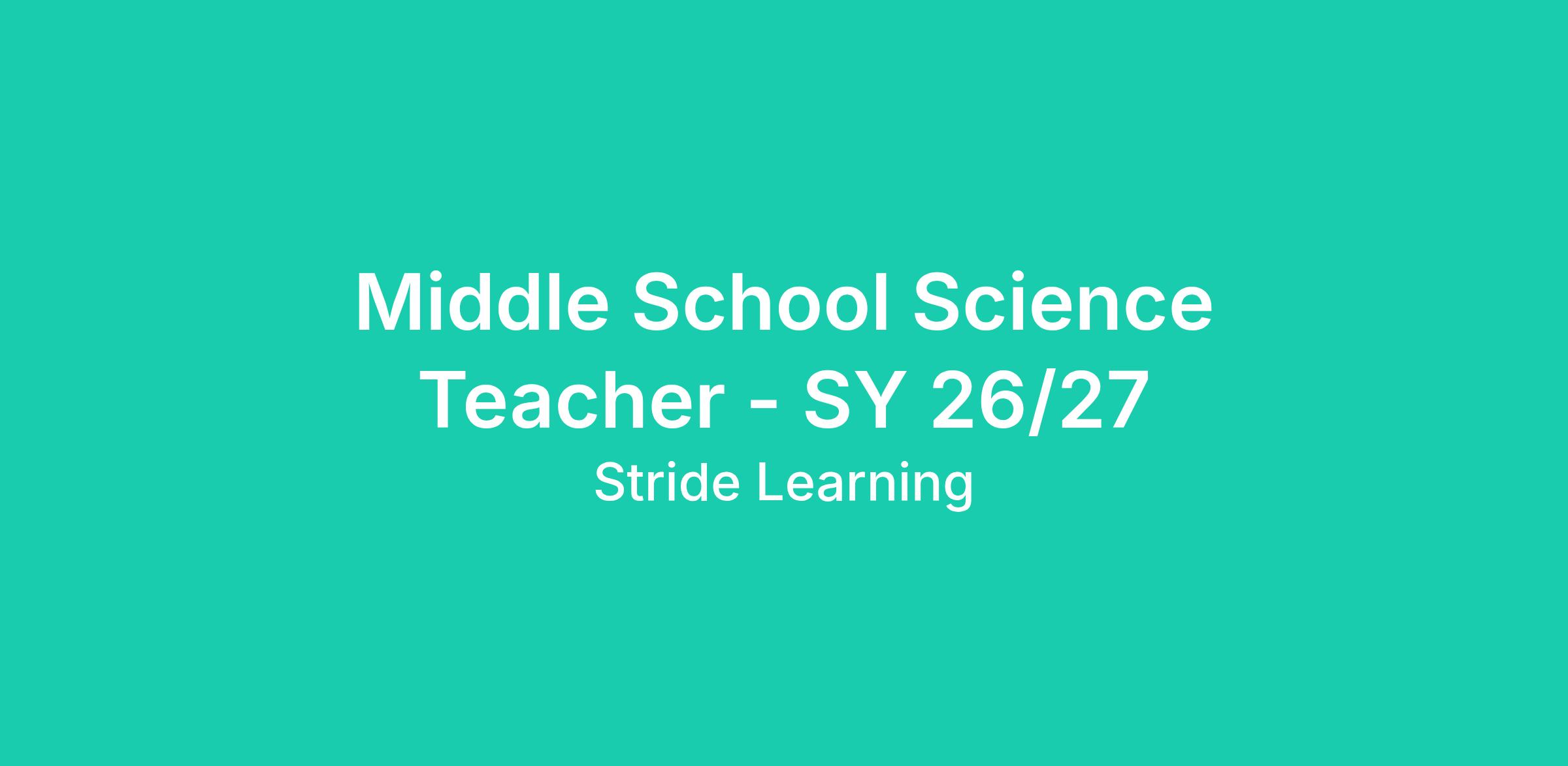 The Middle School Teacher is a highly qualified, state certified educator responsible for delivering specific course content in an online environment. Teachers provide instruction, support, and guidance, manage the learning process, and focus on students’ individual needs. Teachers monitor student progress through Stride K12’s learning management system. They actively work closely with students and parents/learning coaches to advance each student’s learning toward established goals. Teachers typically work from home but must travel occasionally throughout the year to various school functions, such as state testing or as otherwise required by the school.