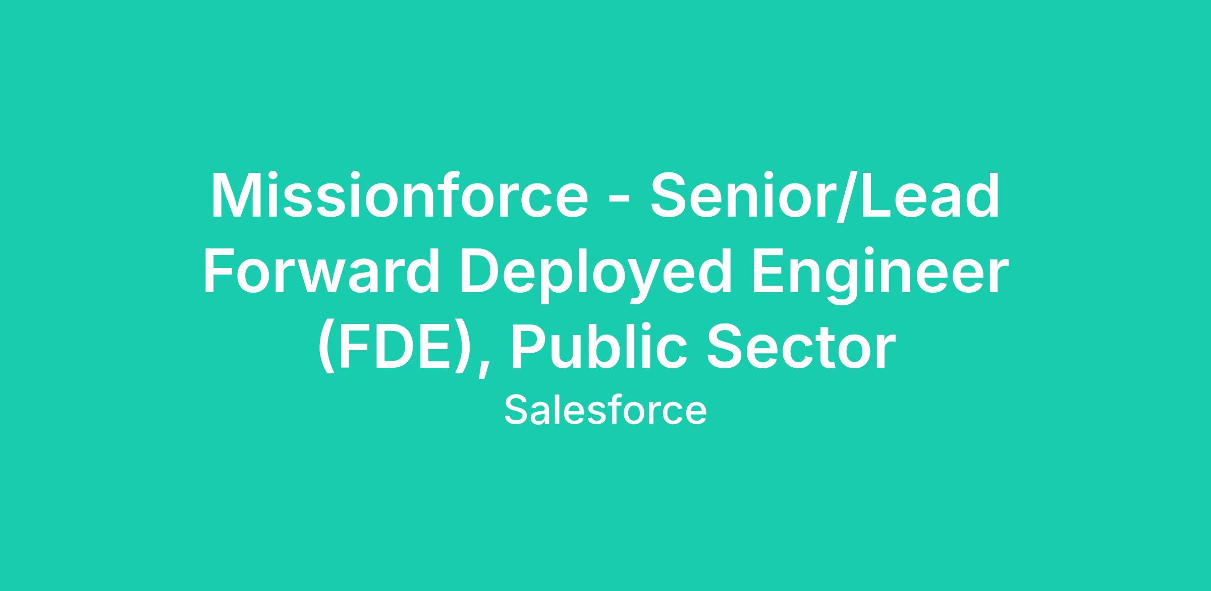 At Salesforce, we believe technology should serve the greater good—powering mission outcomes, stewarding taxpayer resources, and enabling innovation at speed and scale. We are seeking a highly accomplished and senior-level Forward Deployed Engineer (FDE) to join our elite Public Sector team at Salesforce. This is a unique and high-impact position, blending the roles of a technologist and strategic partner. In this role, you will be the primary driver for bringing cutting-edge AI and other transformative solutions to life for mission-critical work across the U.S. Department of Defense, Intelligence Community (IC), and Aerospace & Allied Nations.