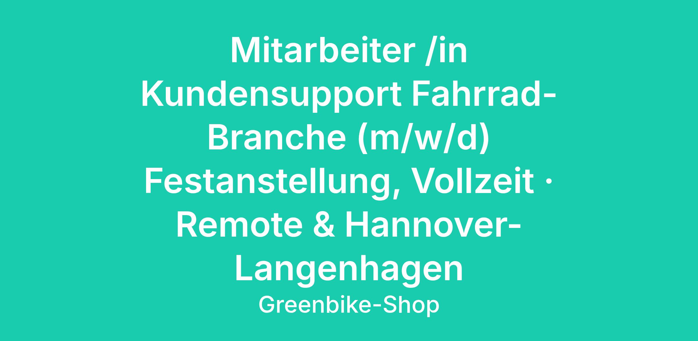Mitarbeiter /in Kundensupport Fahrrad-Branche (m/w/d) Festanstellung, Vollzeit ยท Remote & Hannover-Langenhagen