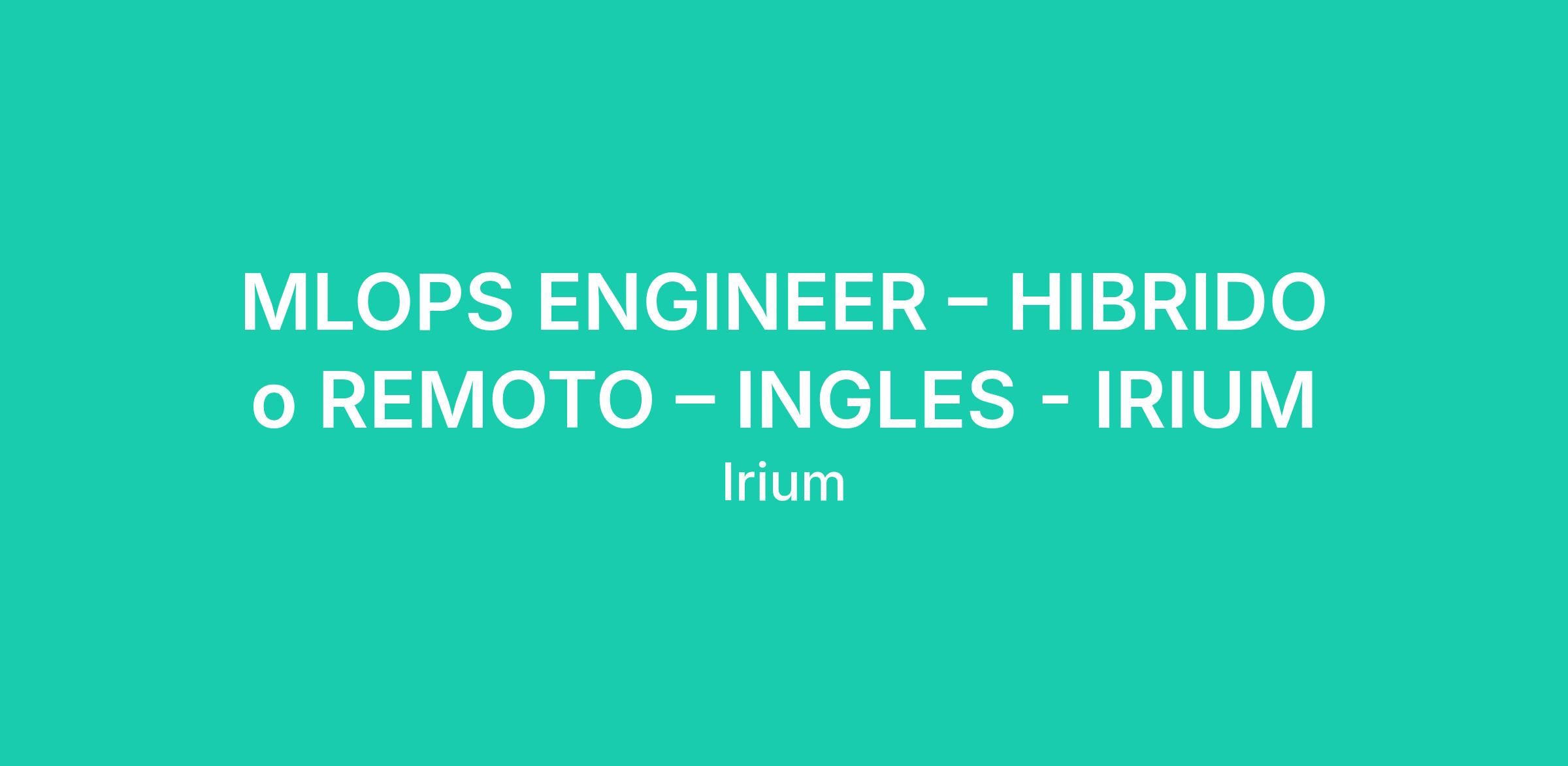 MLOPS ENGINEER – HIBRIDO o REMOTO – INGLES - IRIUM